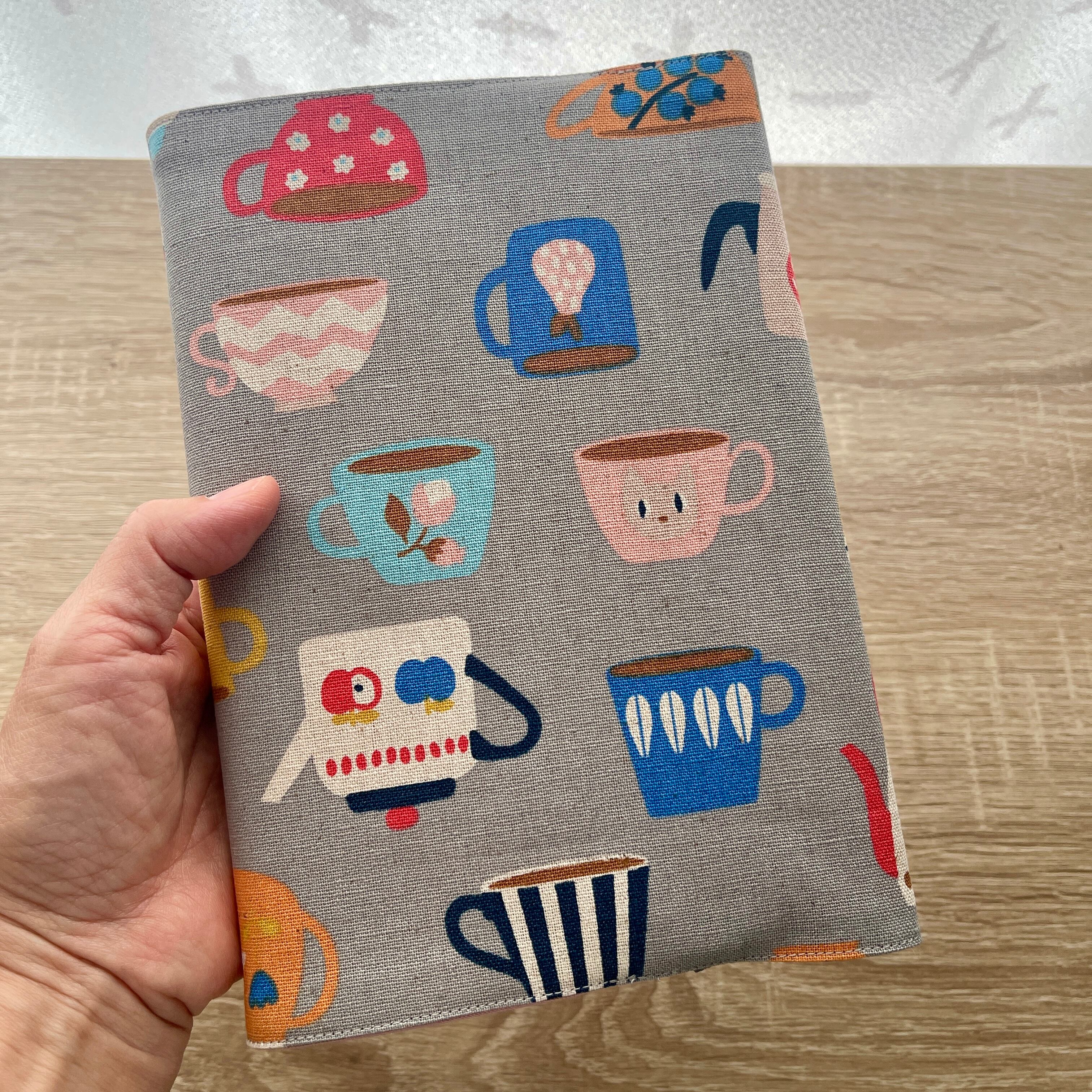 表地はグレー地にカップやポットのイラストが可愛いオックス生地です。
