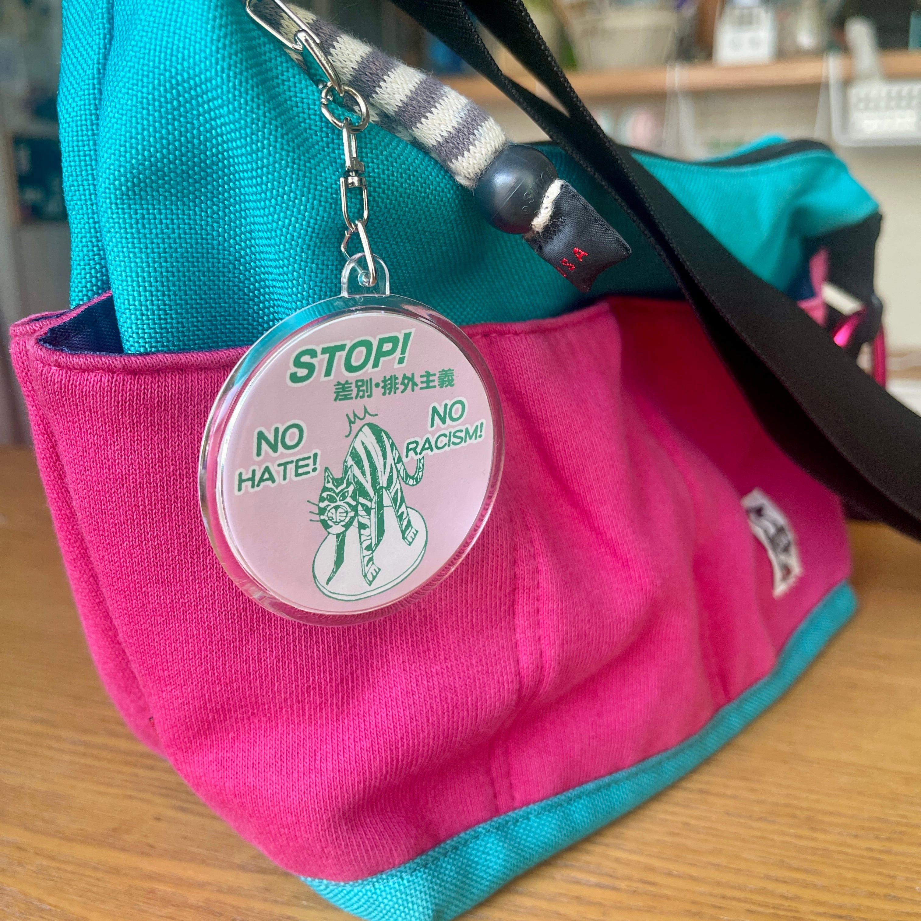 NO差別・排外主義キーホルダー【サークルピンクCAT】