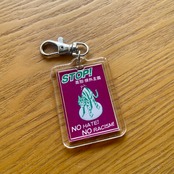 NO差別・排外主義キーホルダー【スクエアパープルCAT】