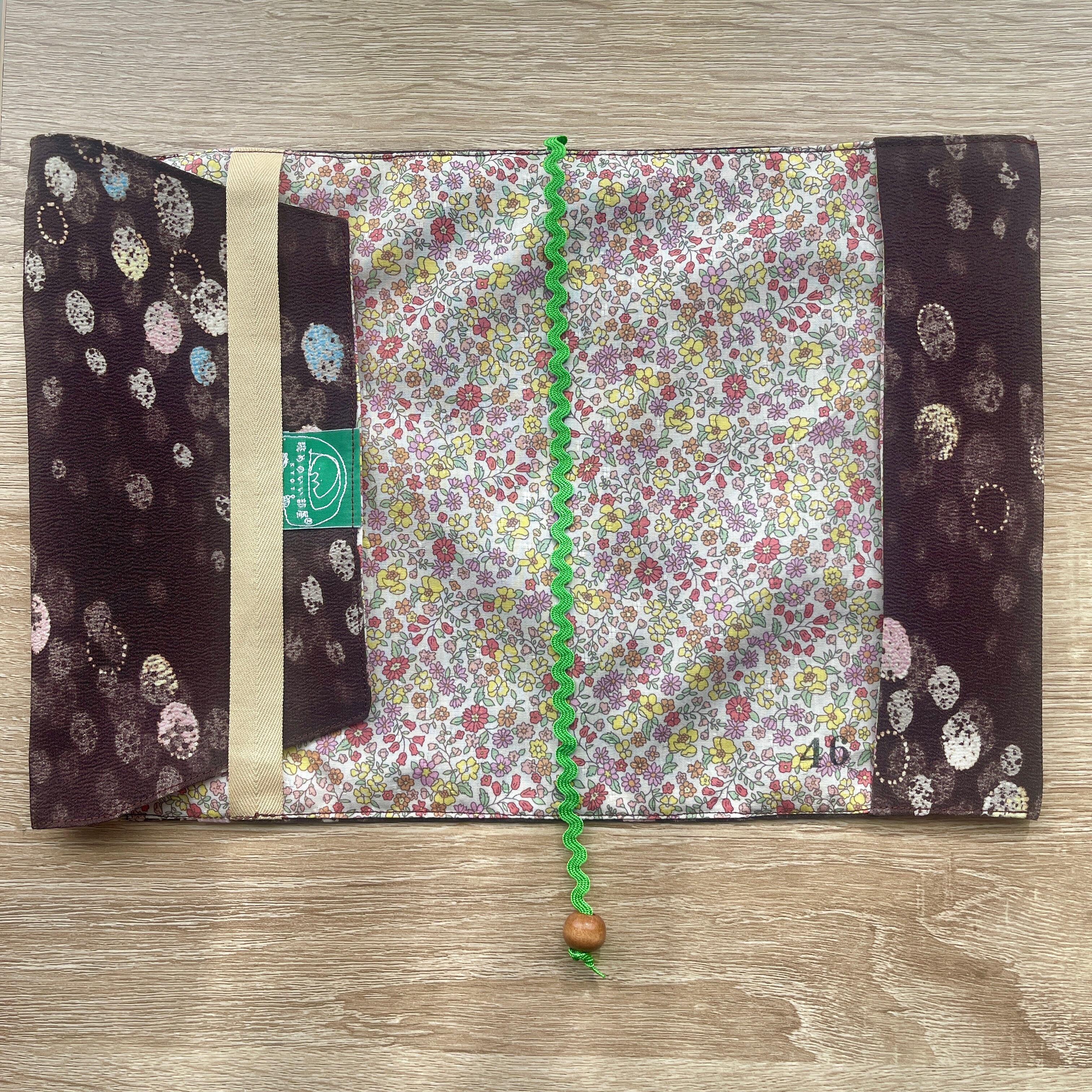裏地はピンクベースの小花柄、栞はライトグリーンを合わせました。