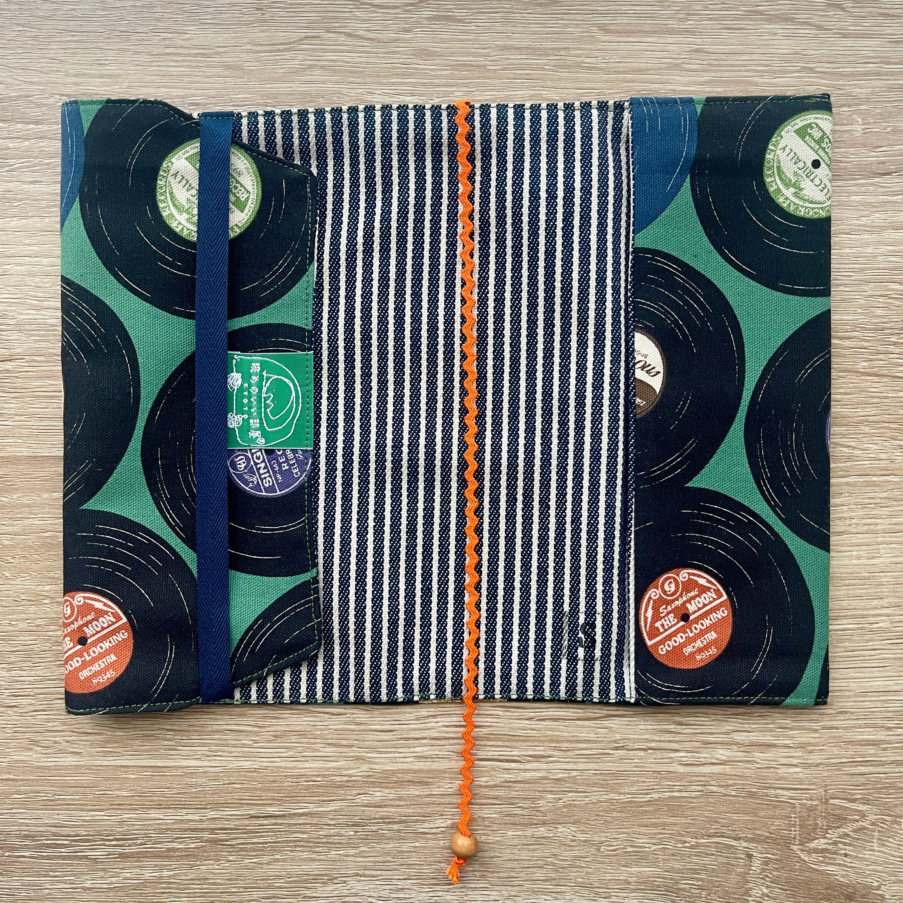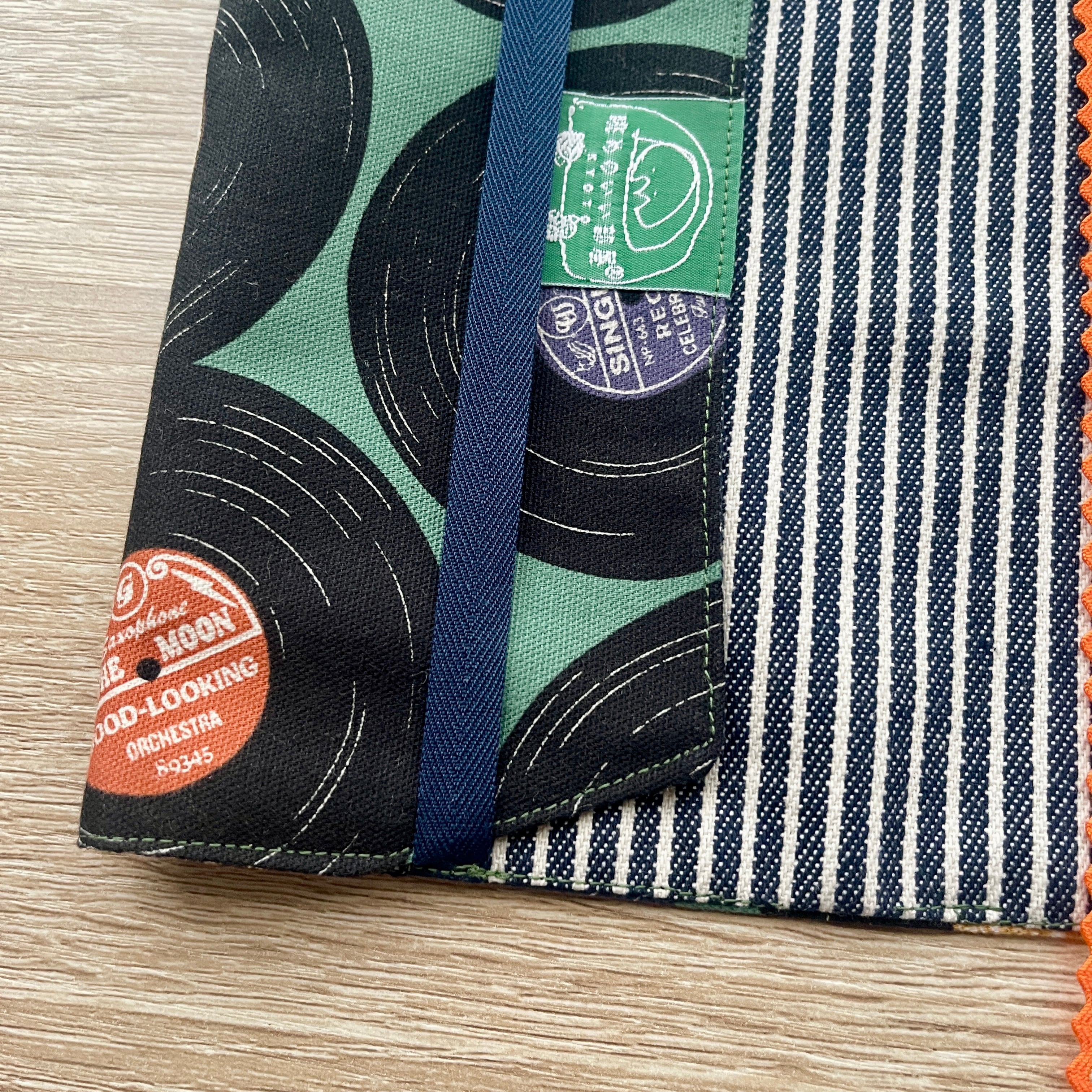 表地は生成地にレコードが並んだ柄がかわいいオックス生地です。