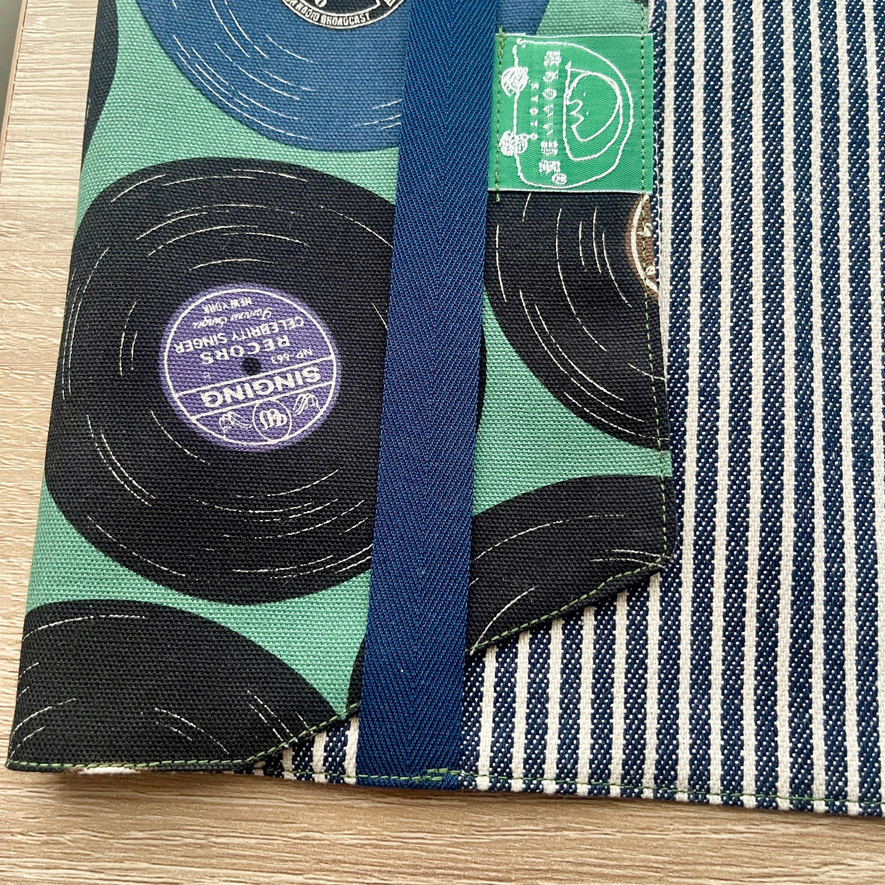 表地は生成地にレコードが並んだ柄がかわいいオックス生地です。