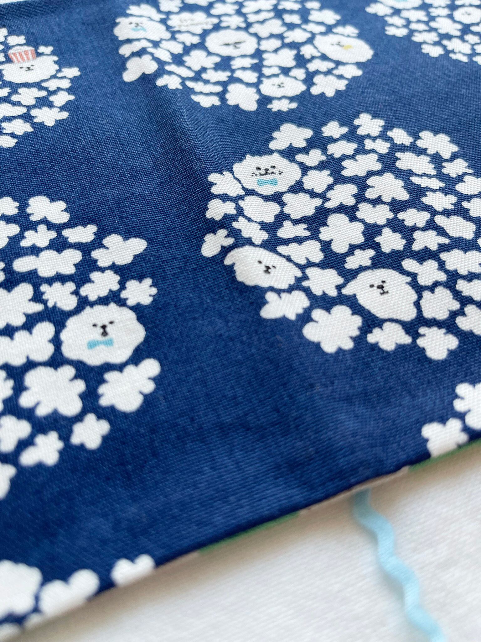ポップコーン犬と裏地のドットがキュートな組み合わせです。