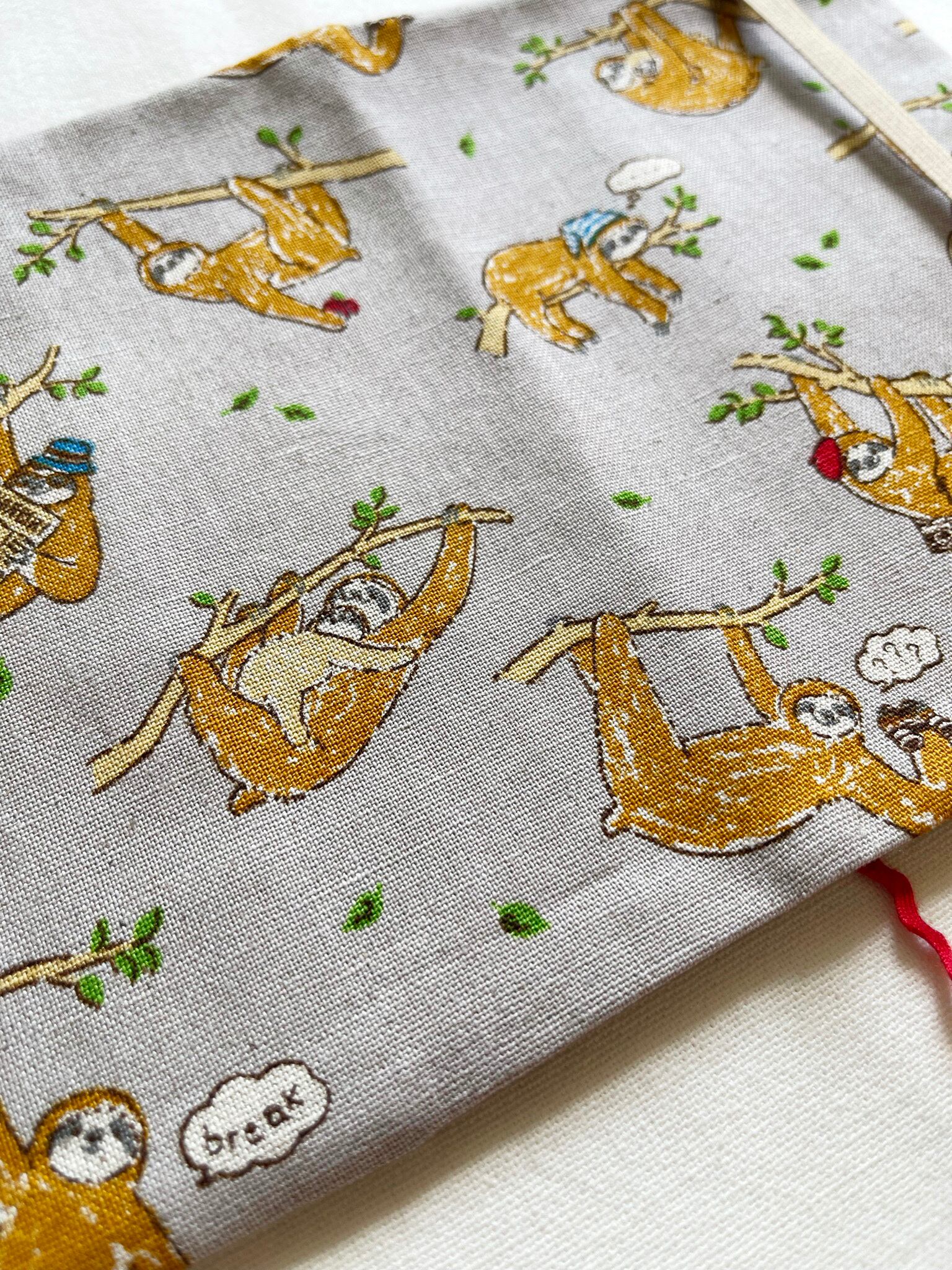 ユルくて可愛いなまけものと、ポップなドットの組み合わせです。