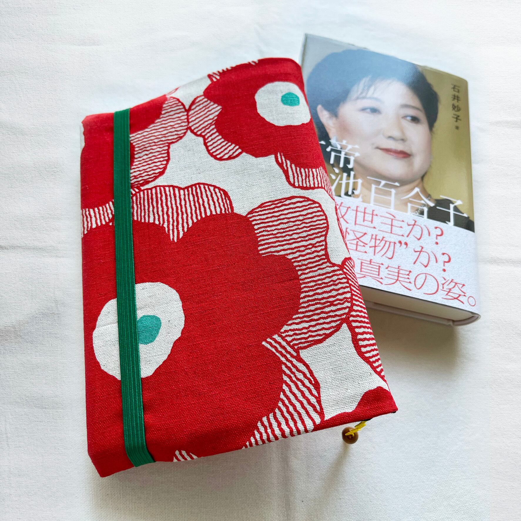 四六判【赤い花×黒ドット】ブックジャケット(ブックカバー)