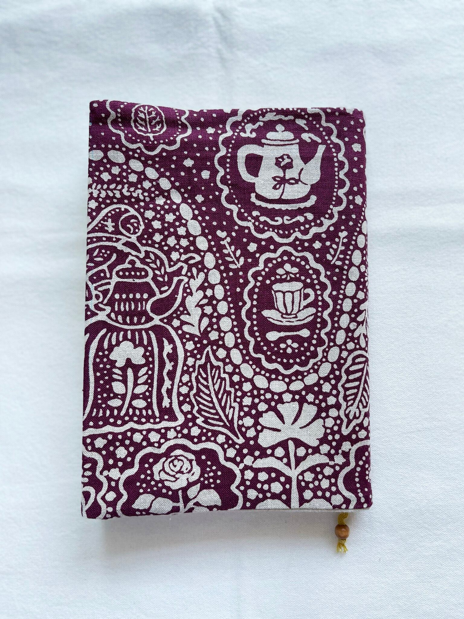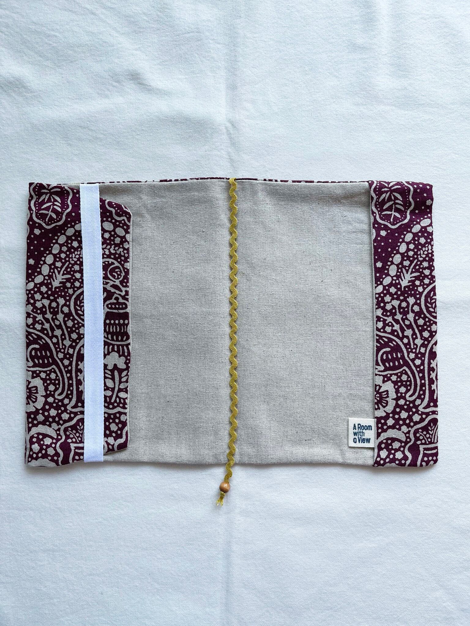 A5判【ぶどう色のお茶会×リネン】ブックジャケット(ブックカバー)