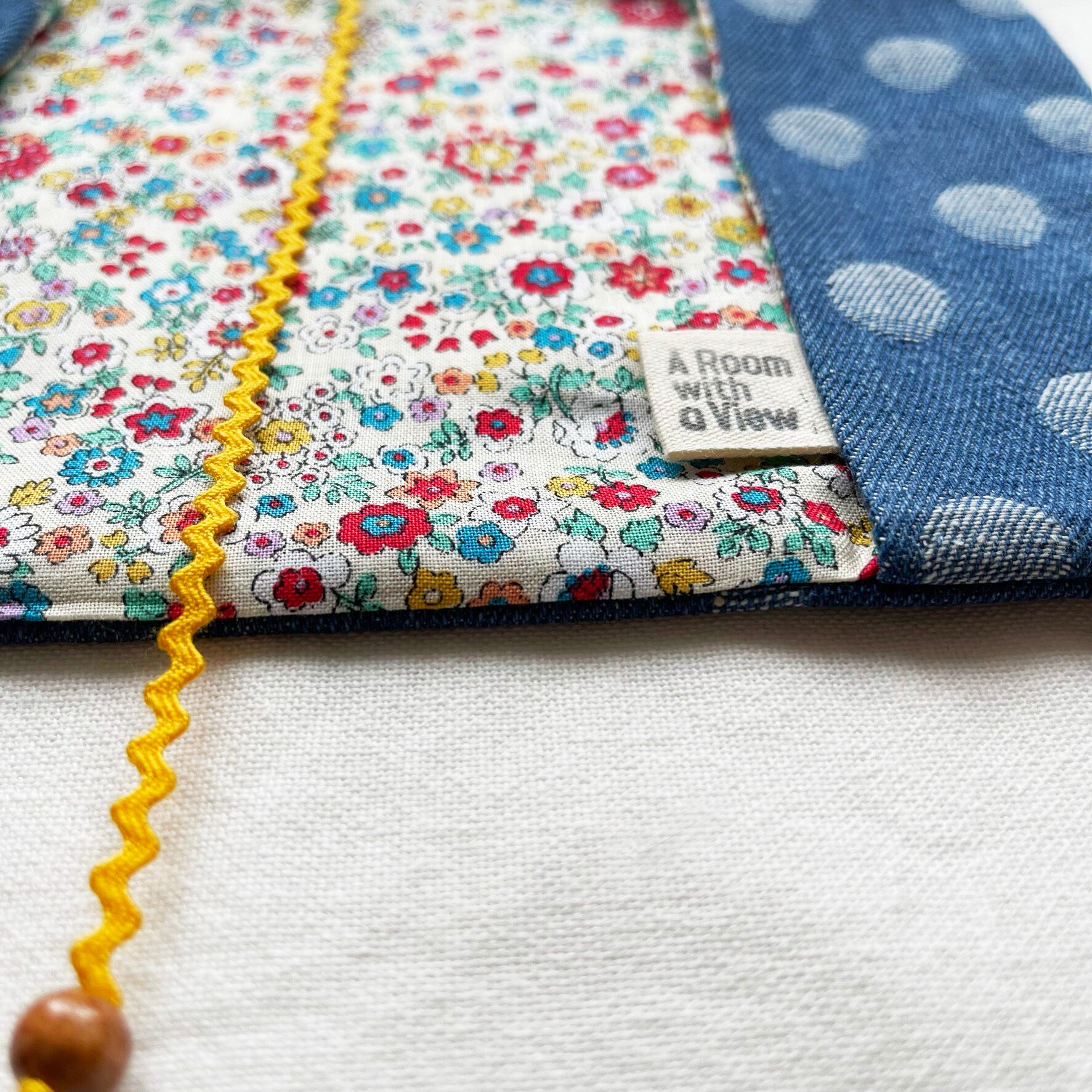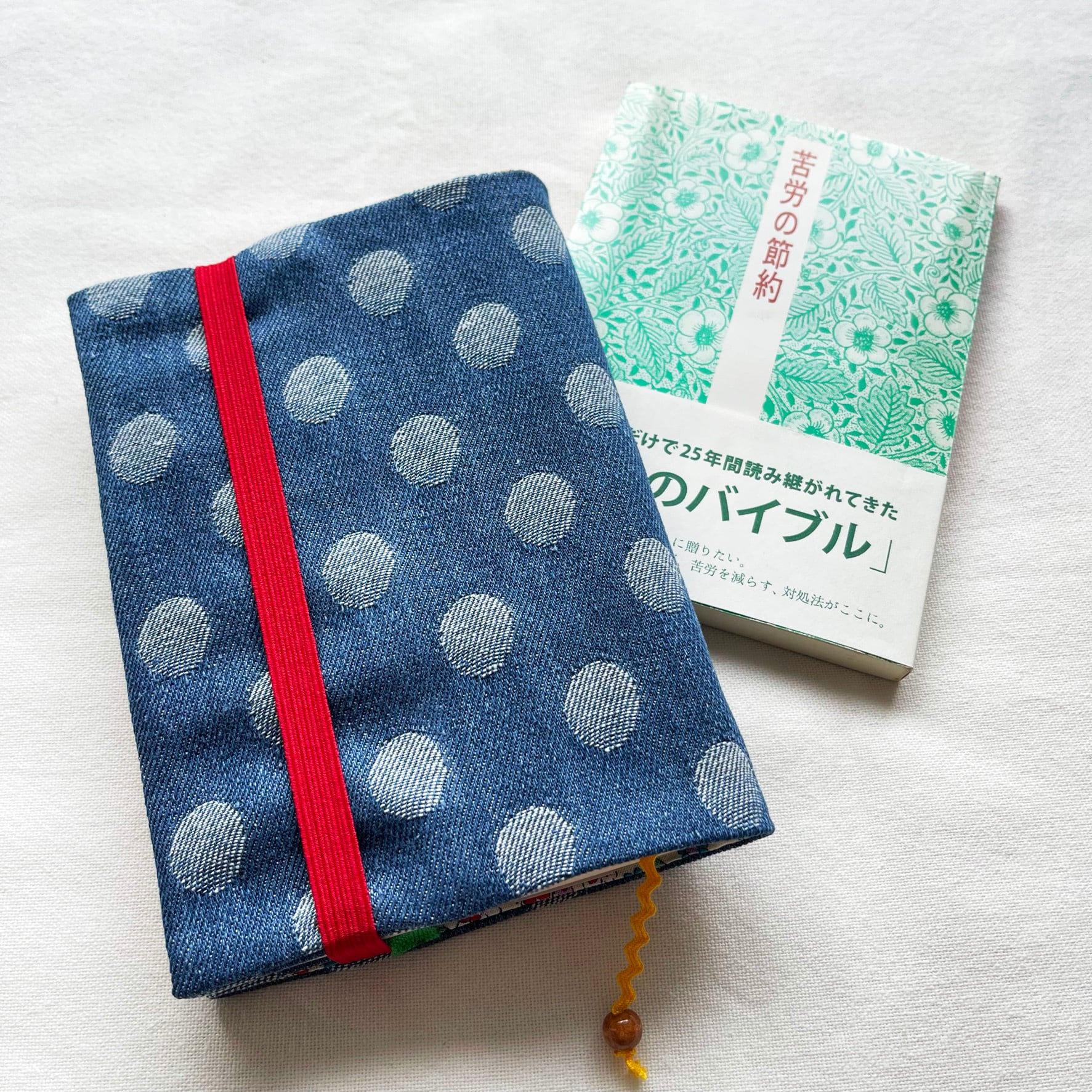 文庫判【水玉デニム×フラワー】ブックジャケット(ブックカバー)
