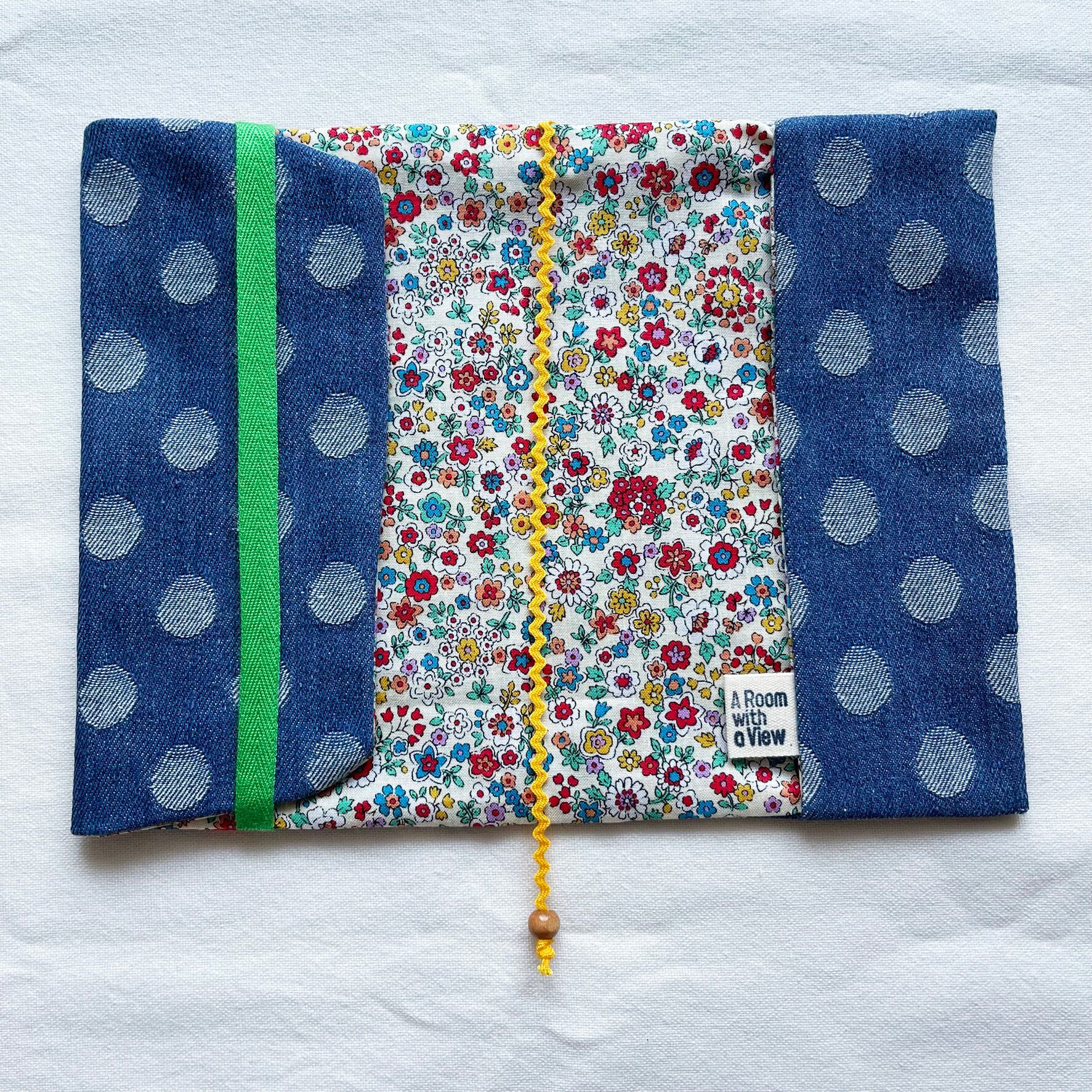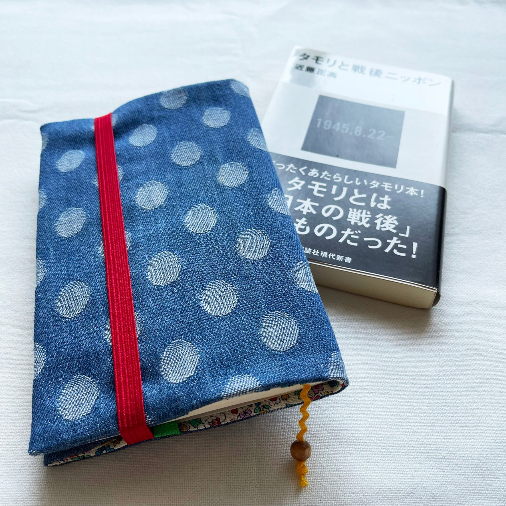新書判【水玉デニム×フラワー】ブックジャケット(ブックカバー)