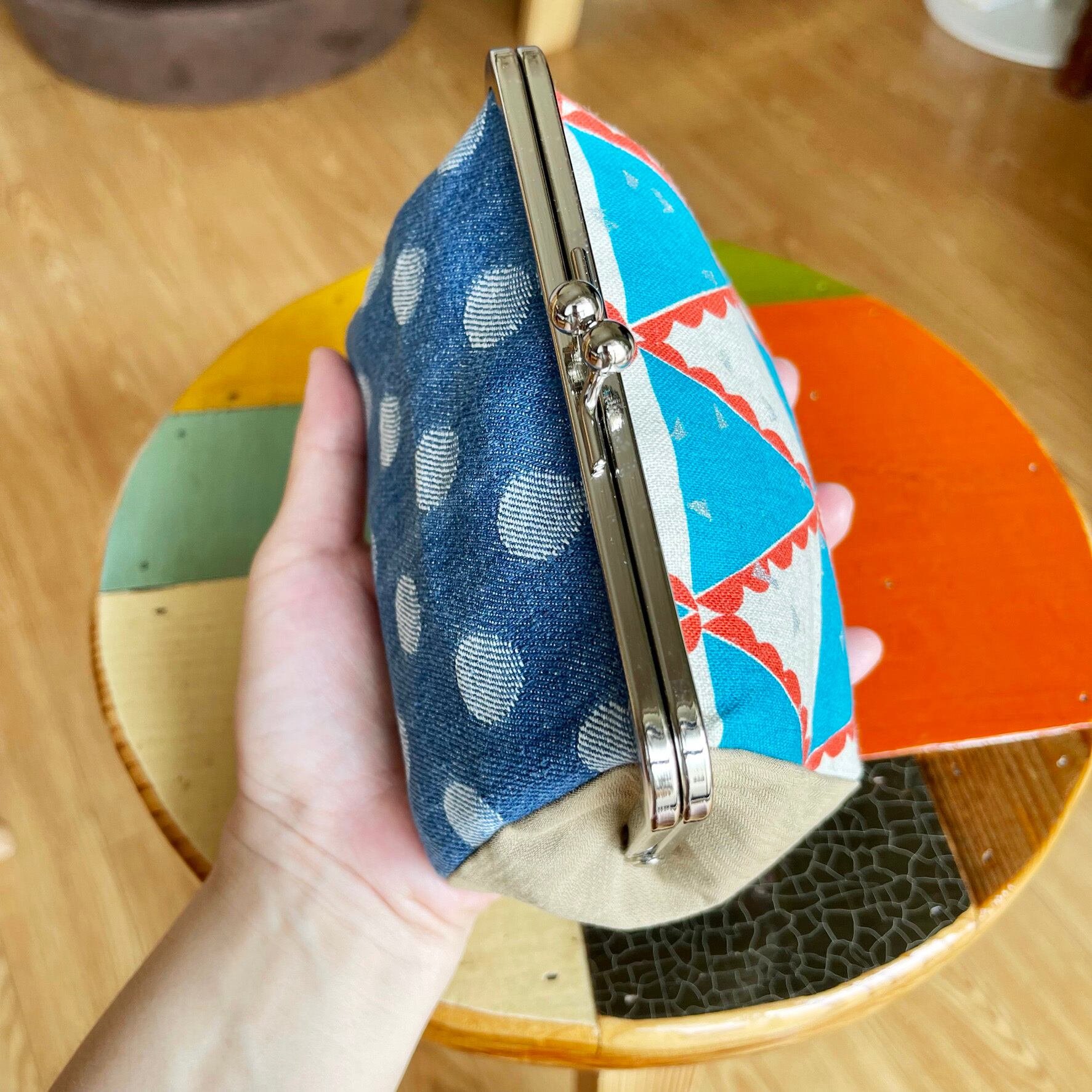 がま口ポーチ/コットンタイプ【ガーランド×水玉デニム】