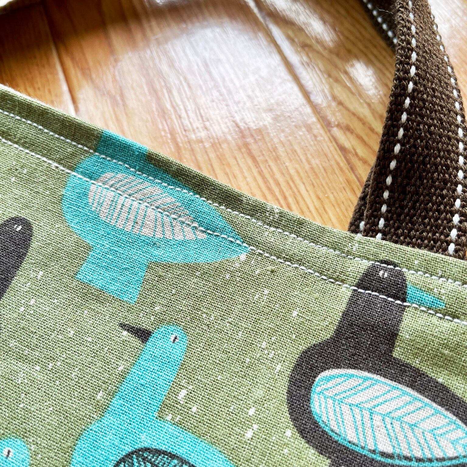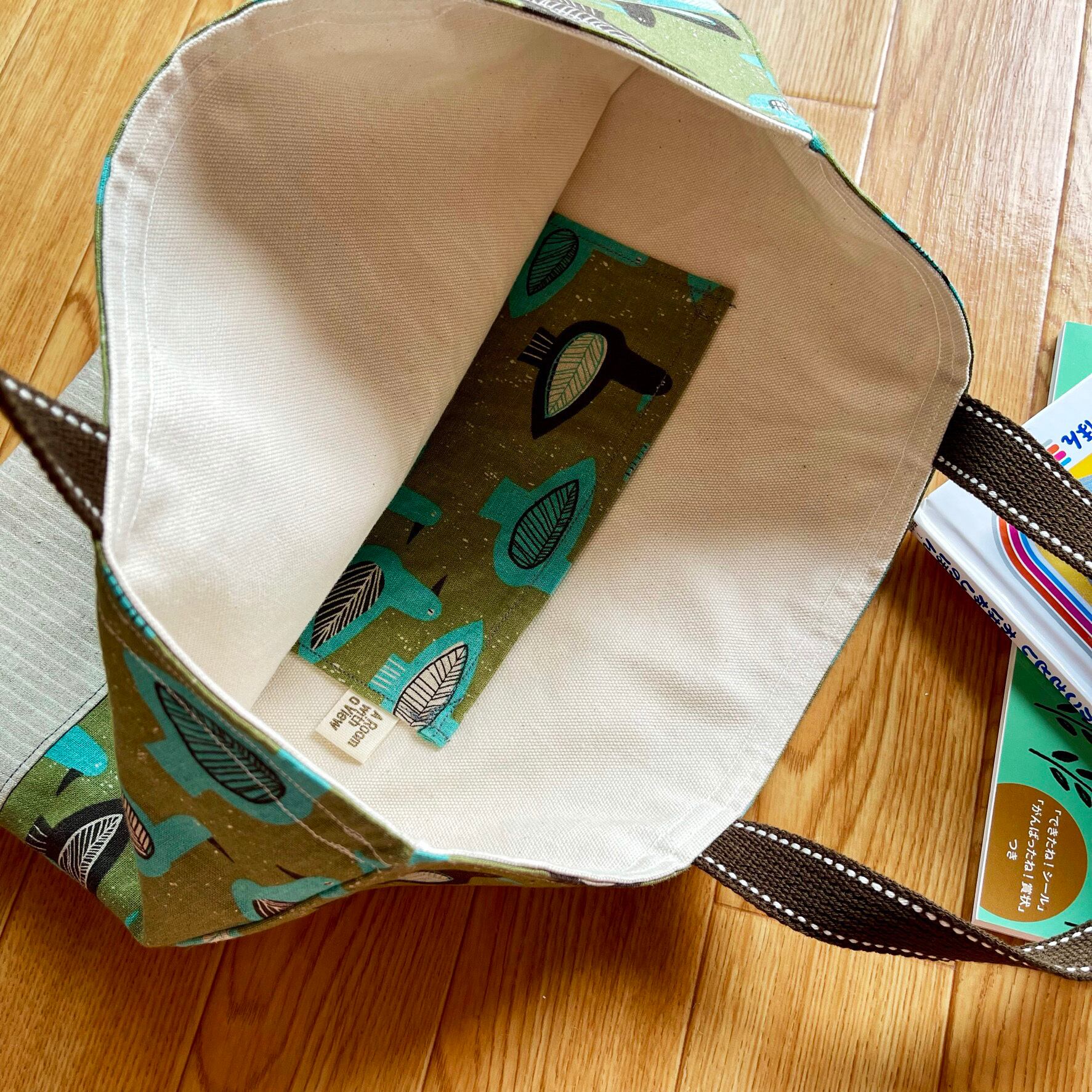 絵本袋・レッスンバッグ/帆布タイプ【とり緑×ストライプ生成】