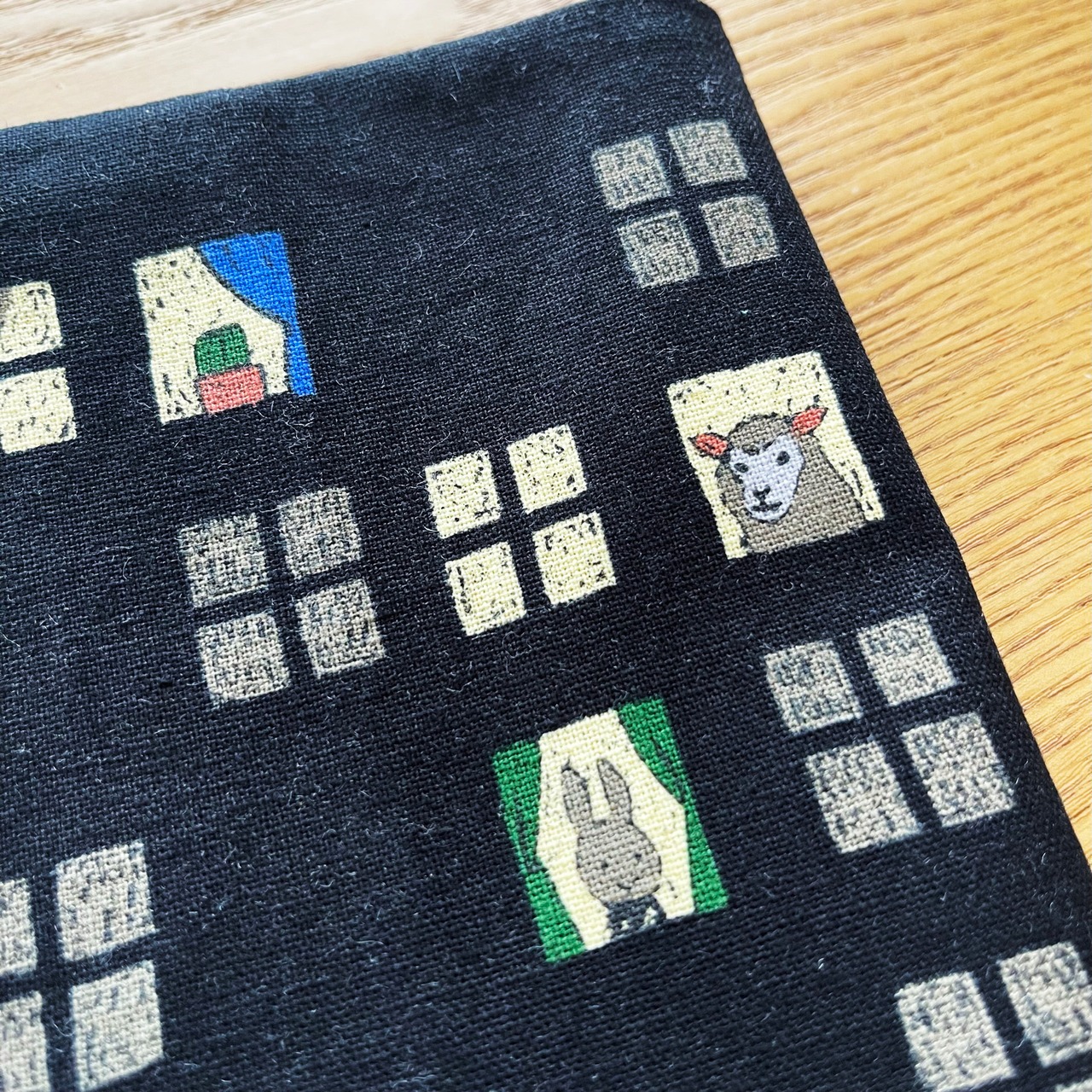 夜の窓から色々なものが見える可愛らしい柄です。