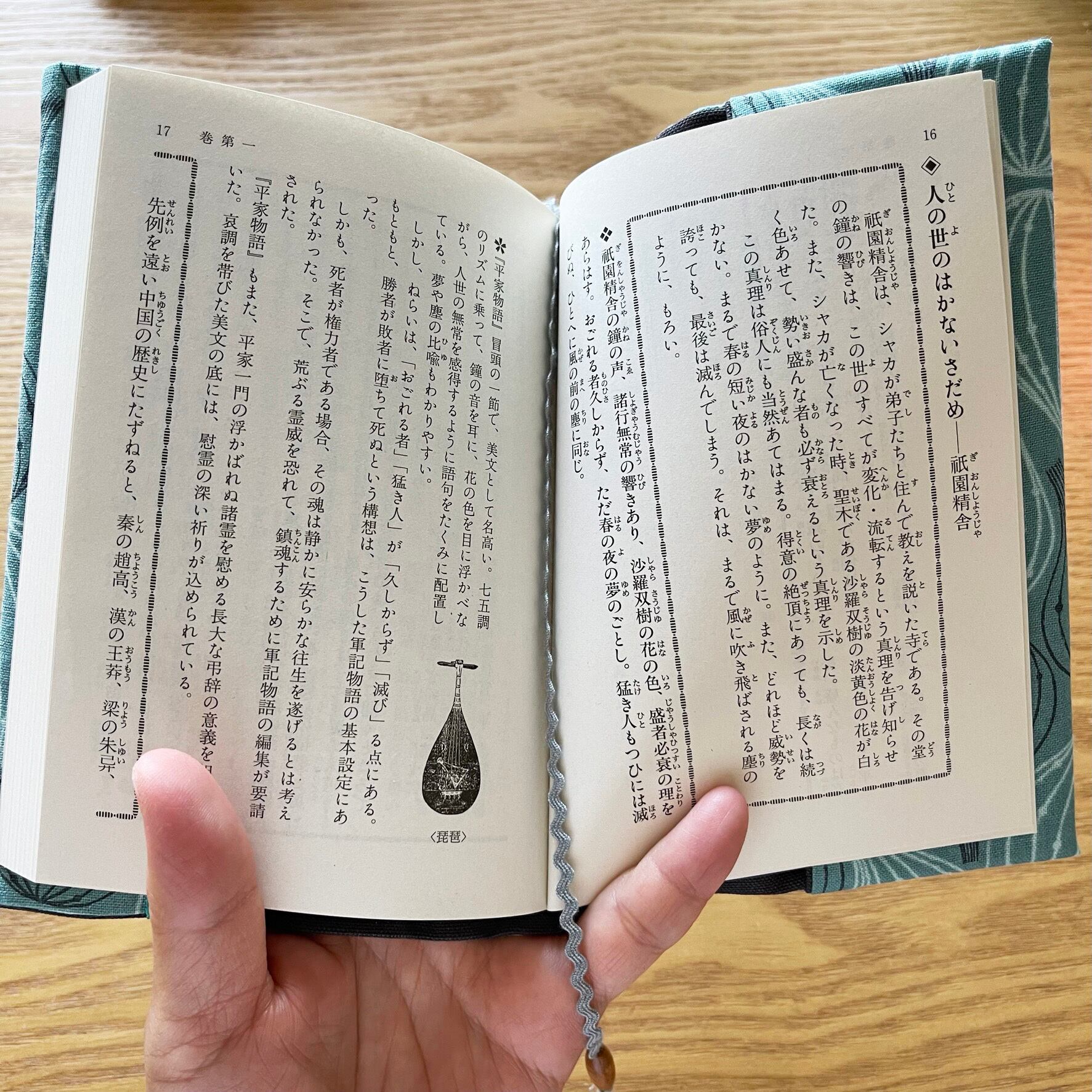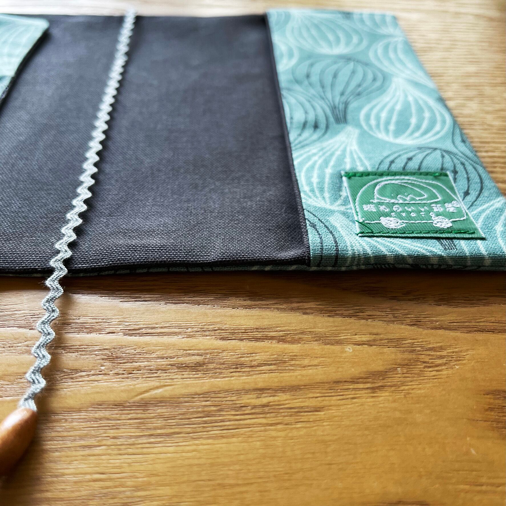 表地はブルーグリーンの柔かい生地でいちじく柄がかわいいです。