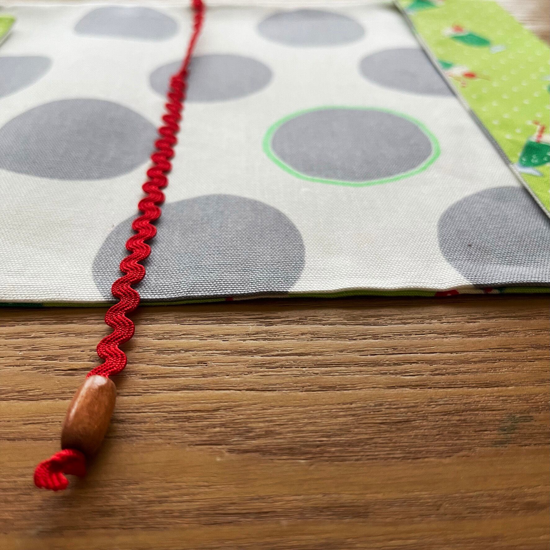 裏地は大きなドット柄のオックス生地を合わせました。
