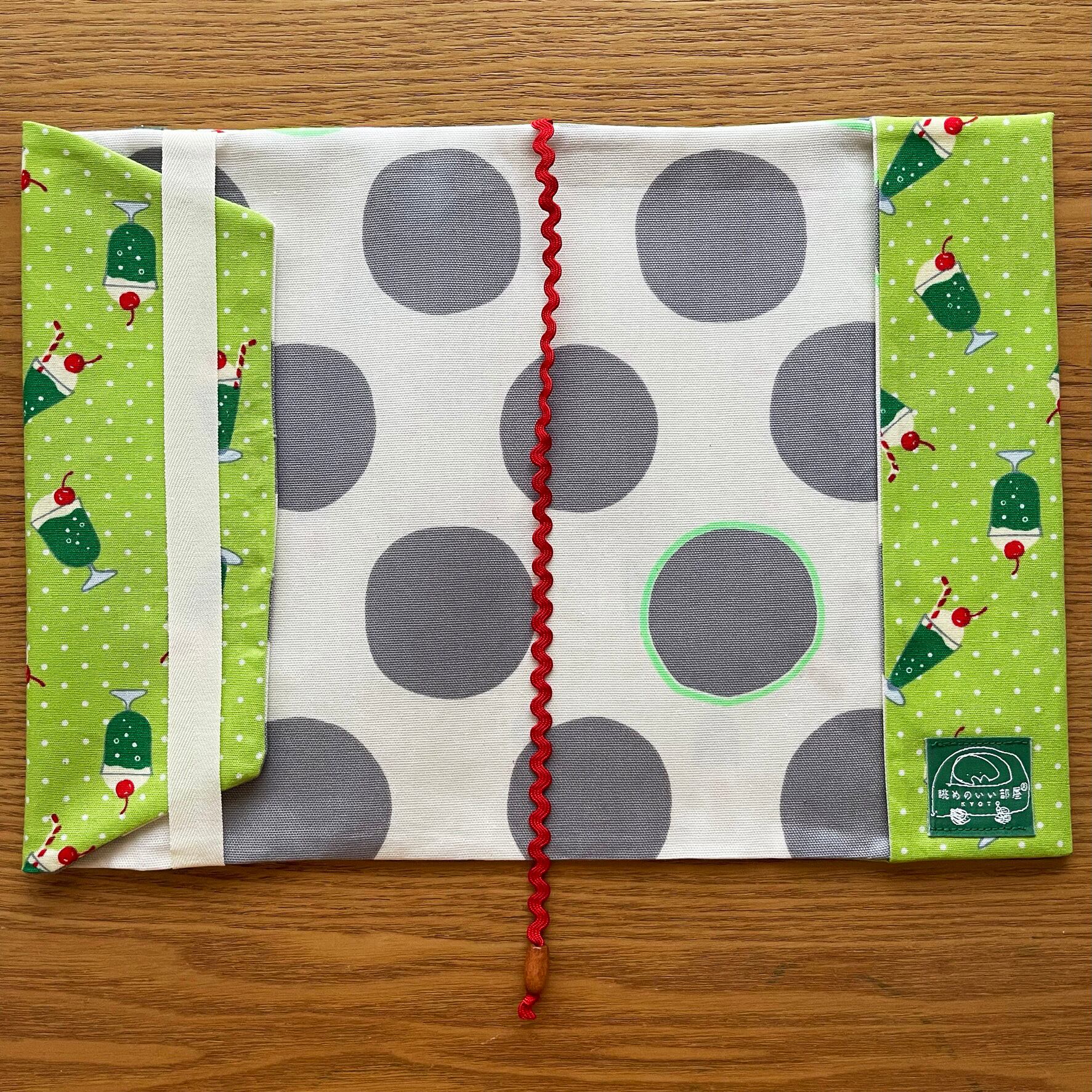 表地はクリームソーダとドット柄がPOPで可愛いコットン生地です。