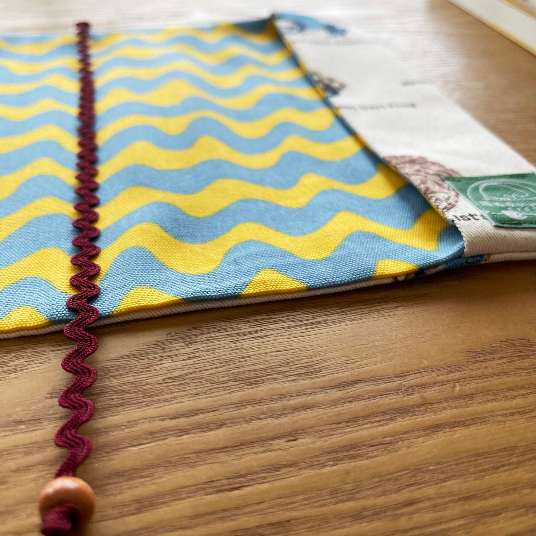 裏地は青×黄の不思議な模様のオックス生地です。