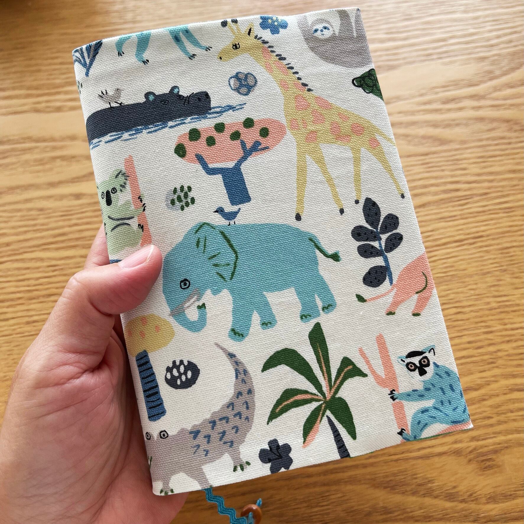 文庫判【サファリ×グリーン水玉】ブックジャケット(ブックカバー)