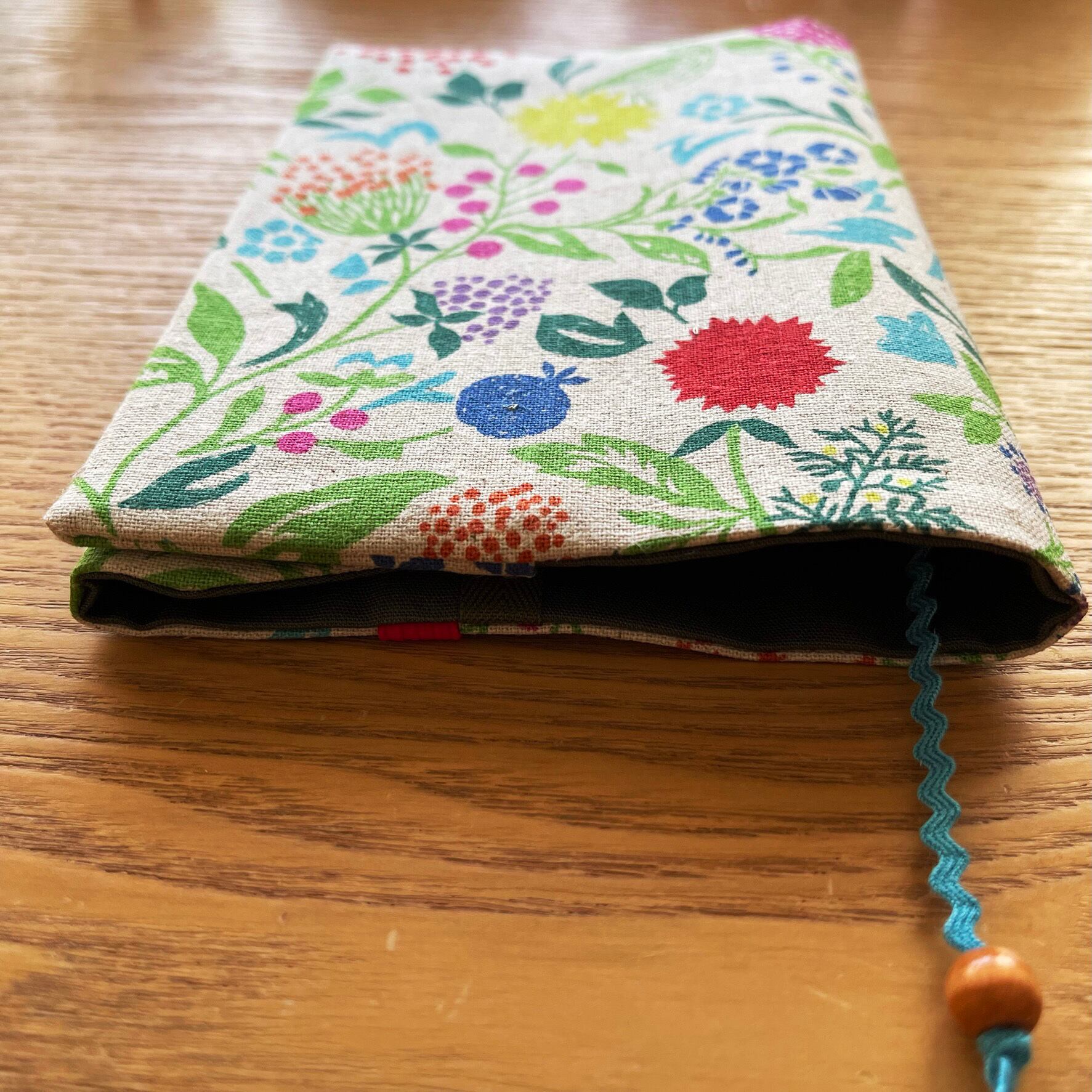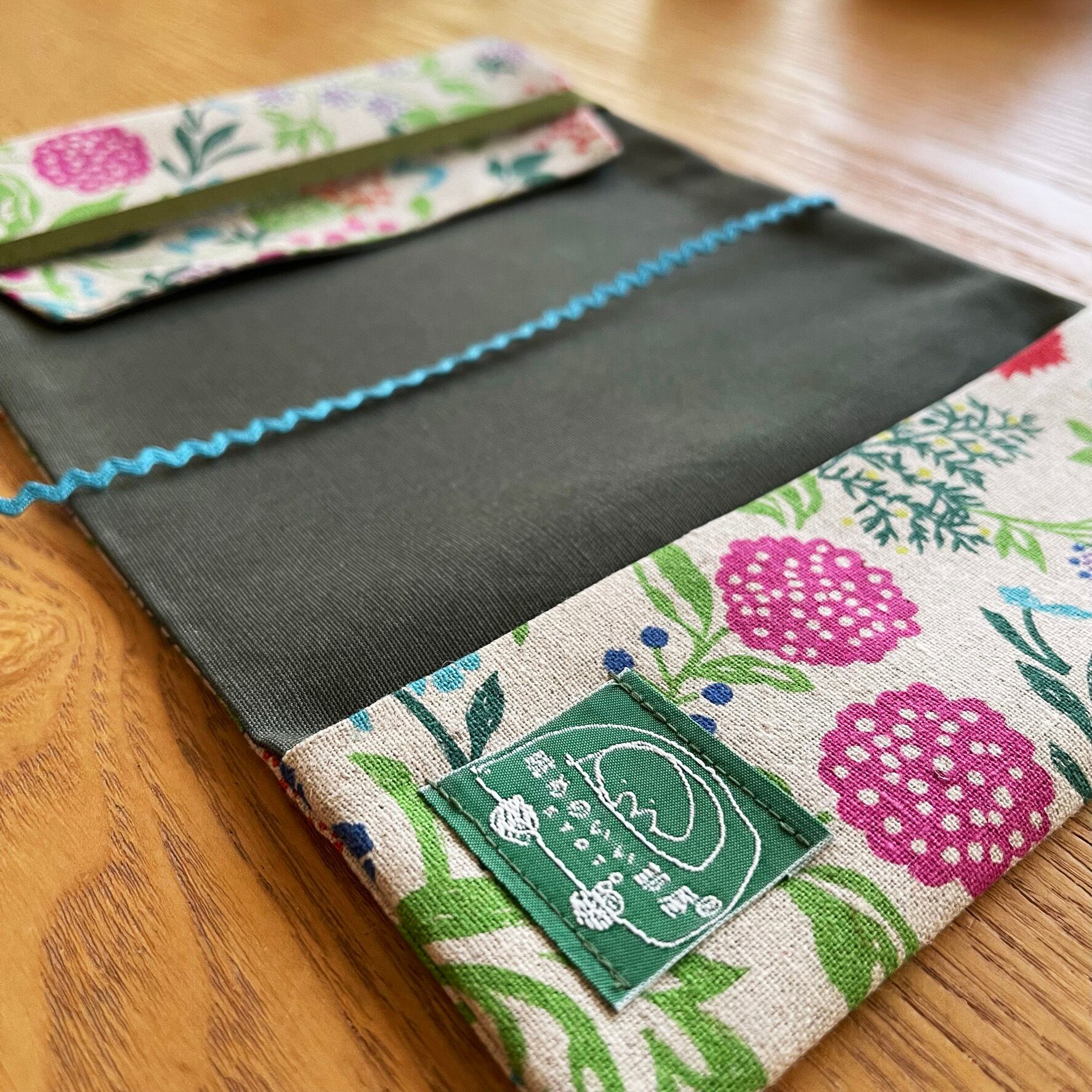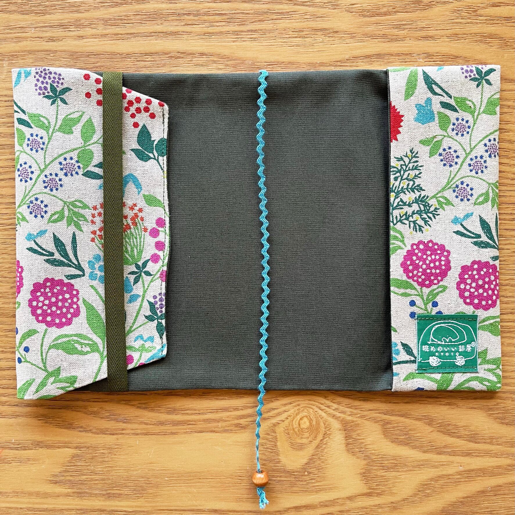 表地はコットンリネンのキャンバス地でキナリにカラフルなプリントです。