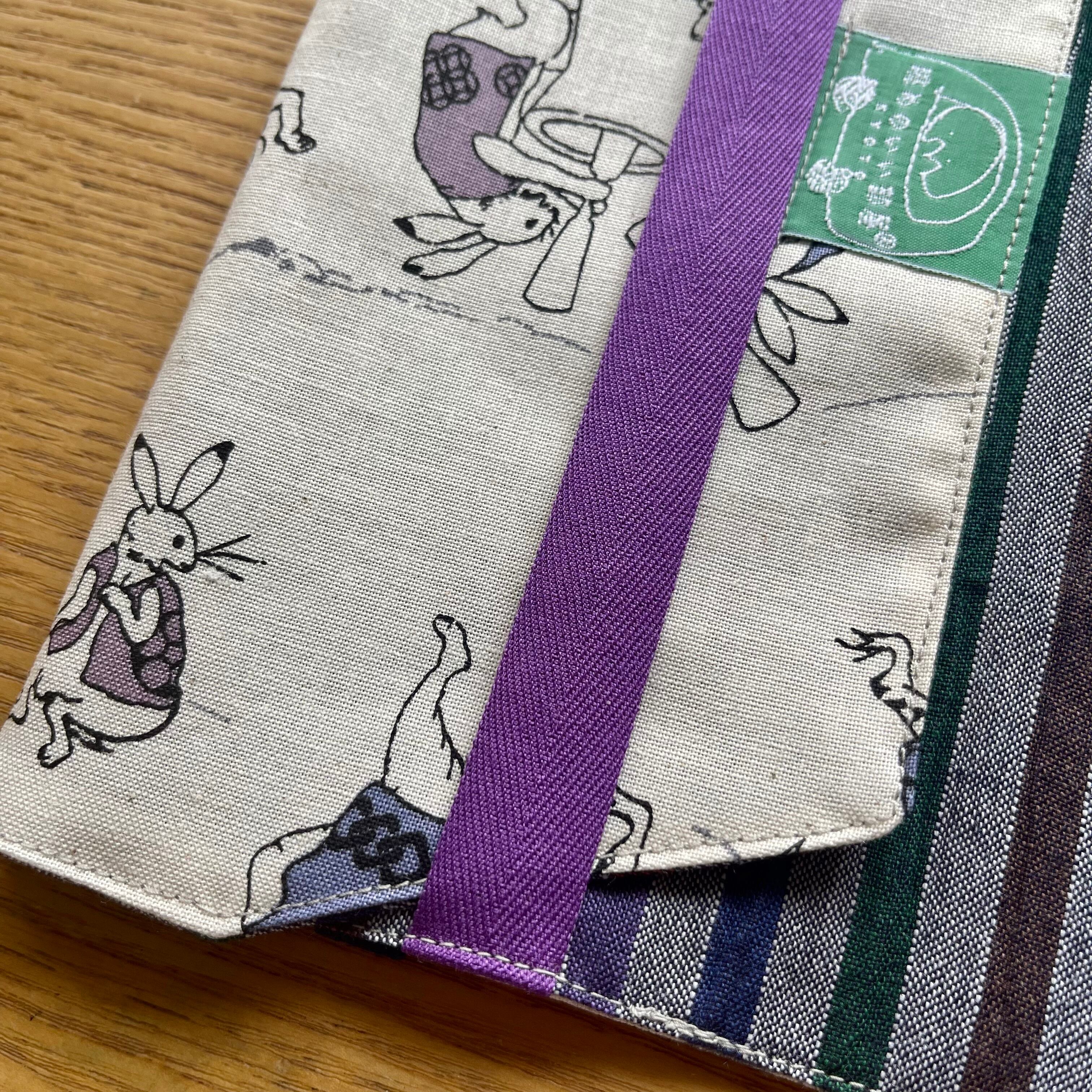 四六判【鳥獣戯画(蛙)×たて縞】ブックジャケット(ブックカバー)