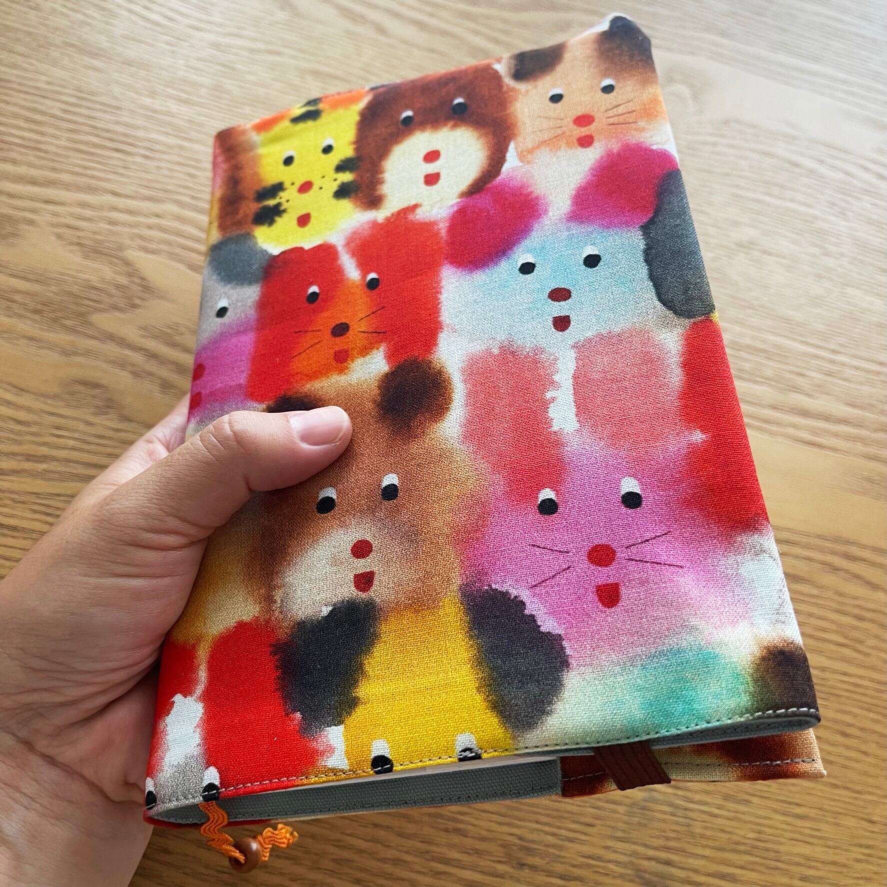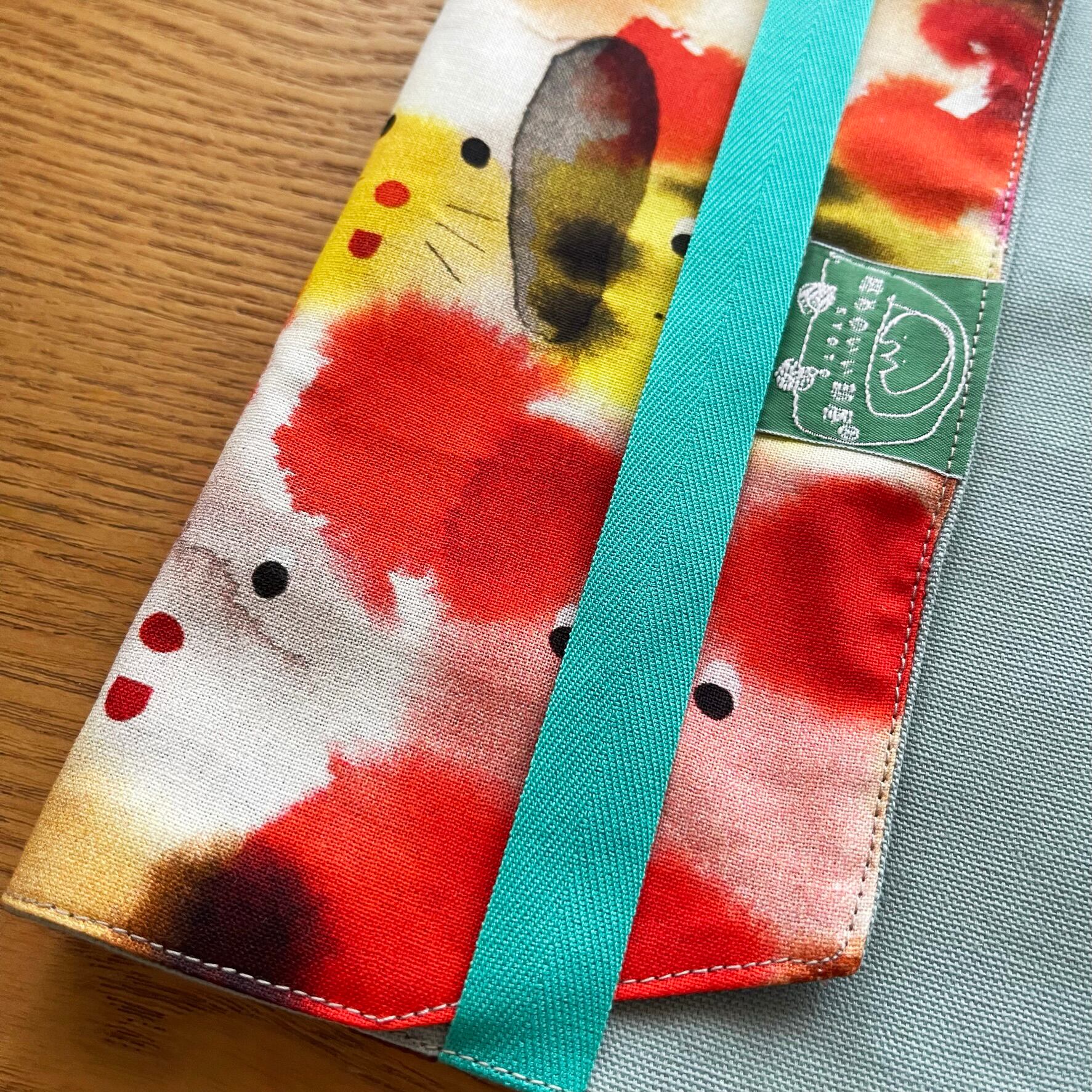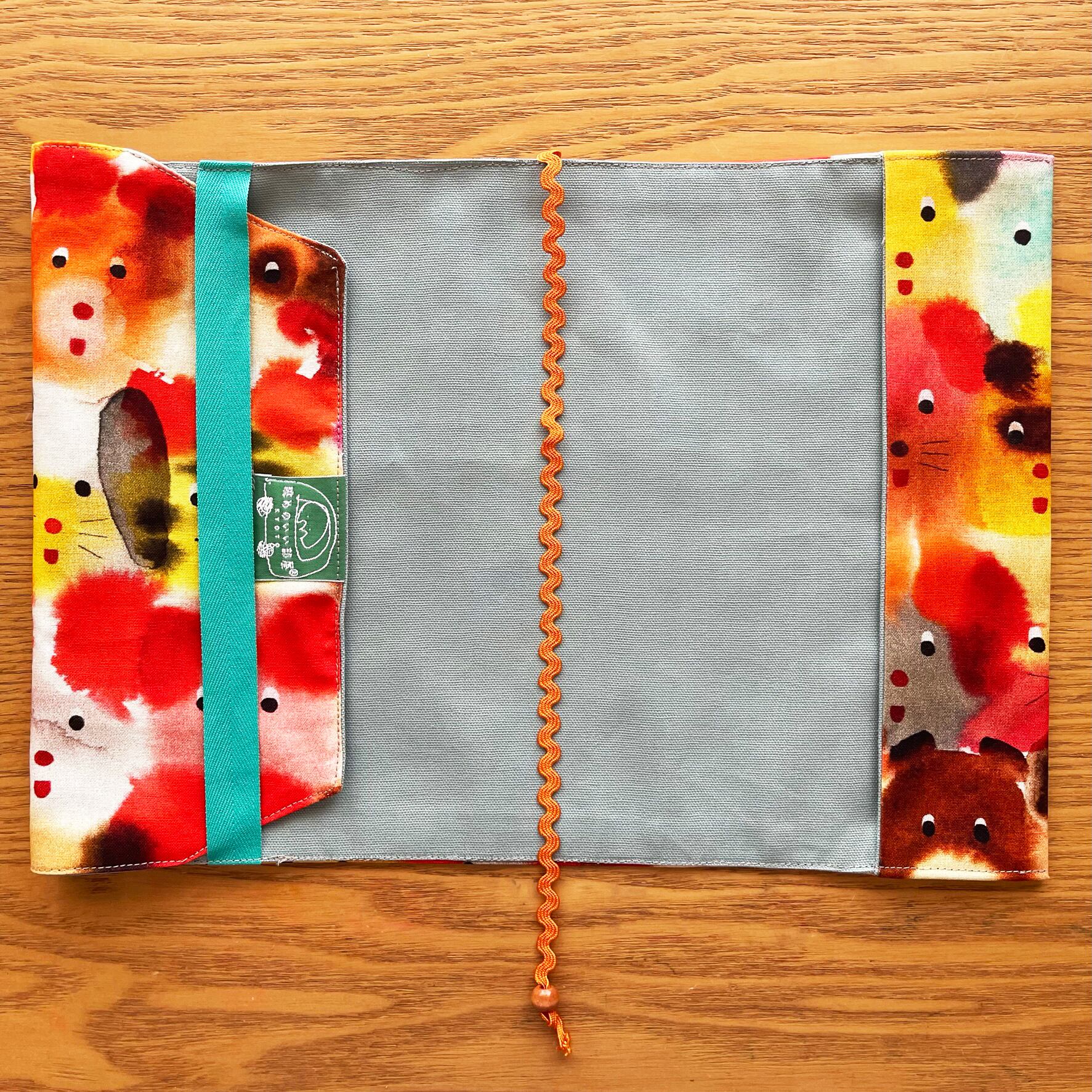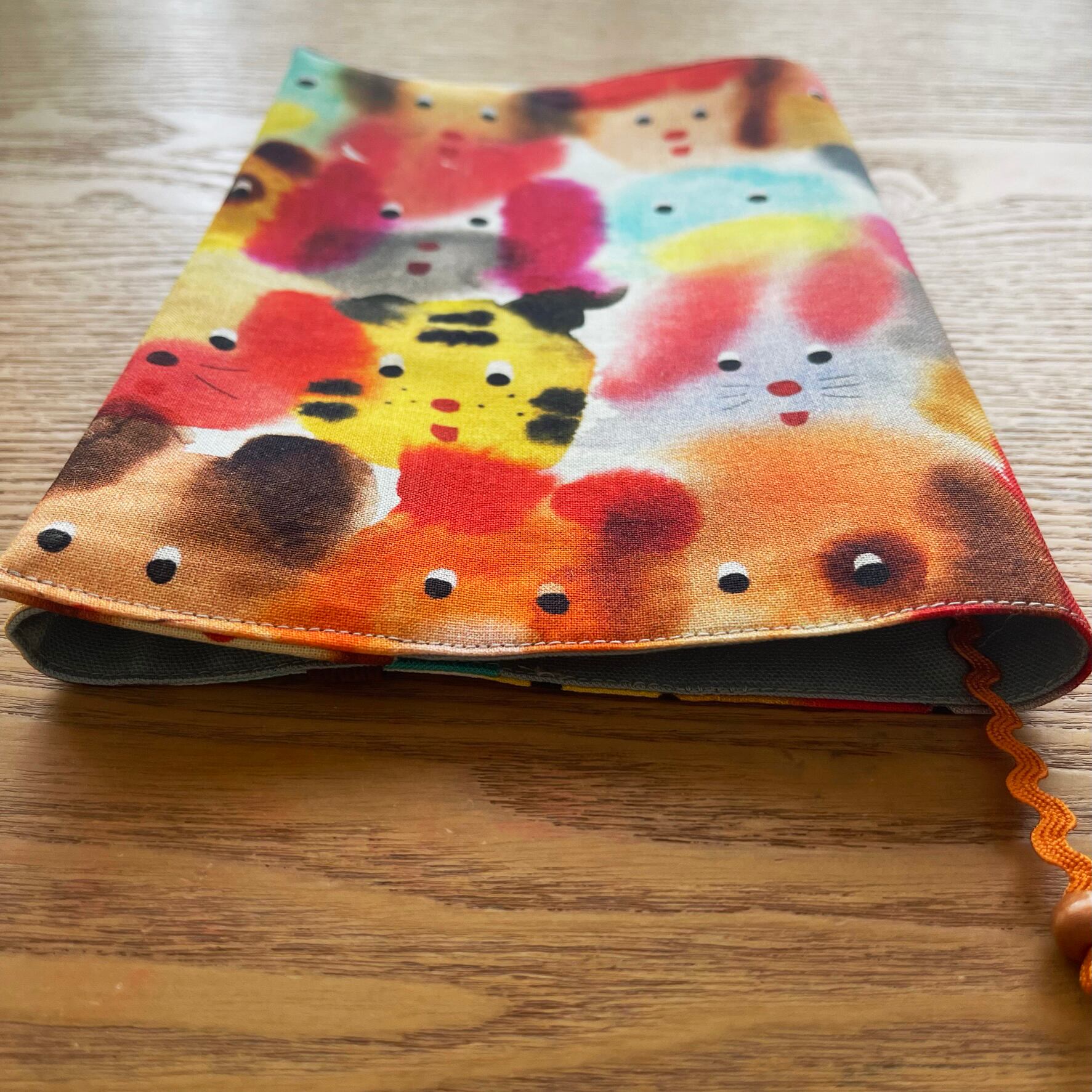 表地は水彩で滲んだような動物のイラストがかわいいコットン生地です。