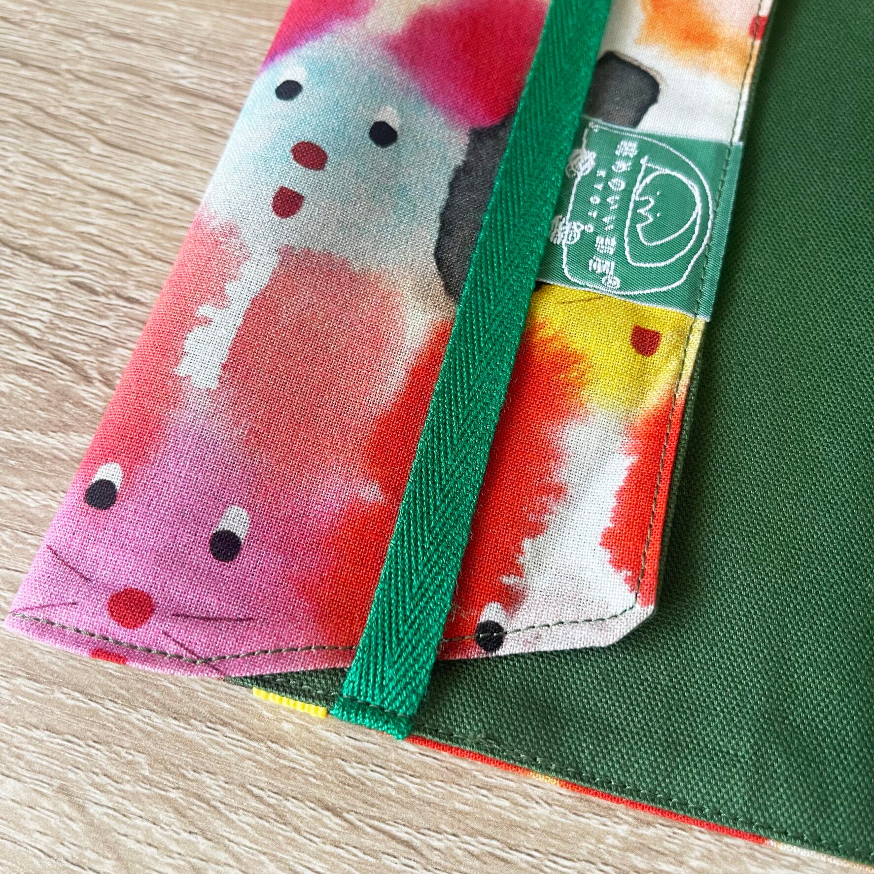 表地は水彩で滲んだような動物のイラストがかわいいコットン生地です。