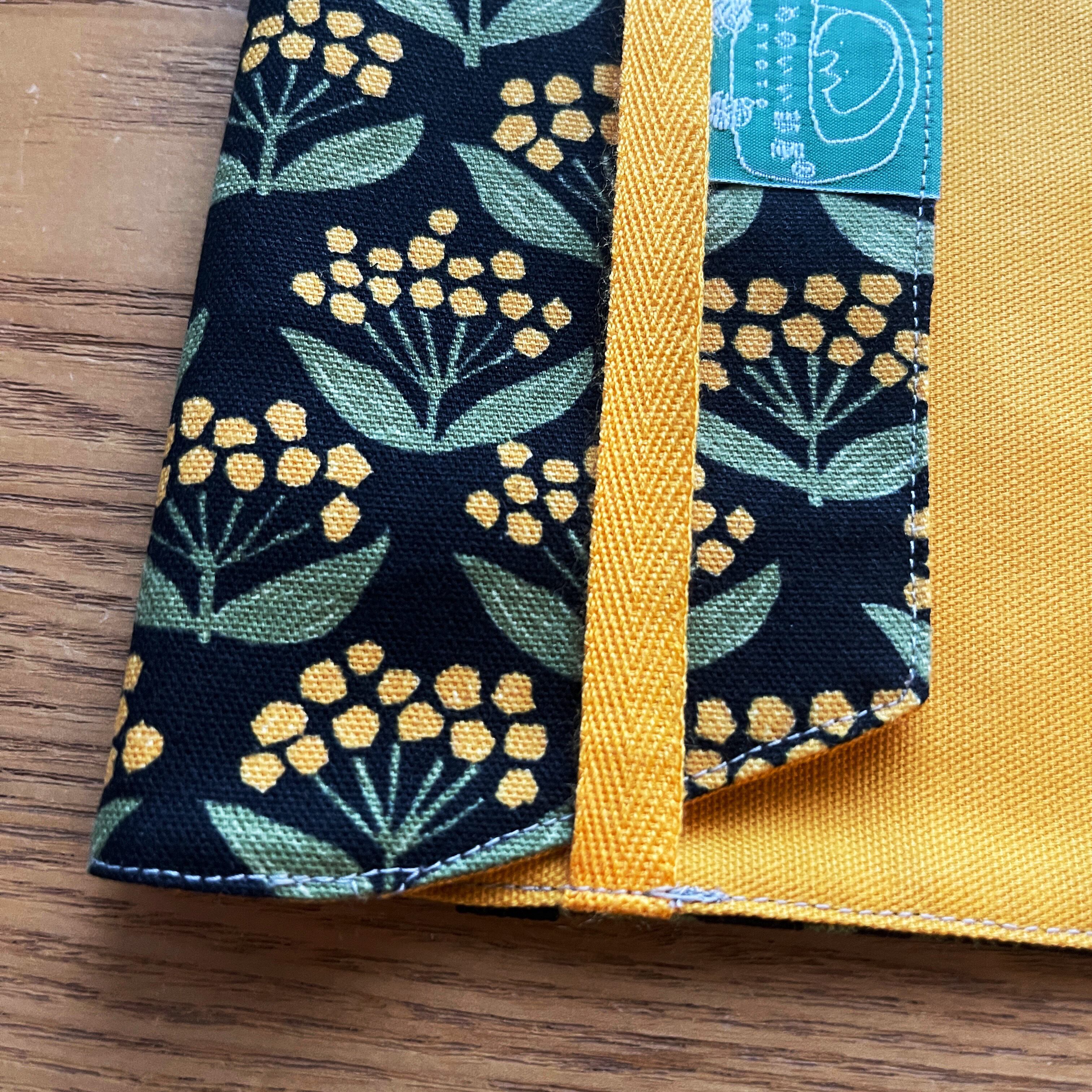 表地はブラック地に黄色いミモザがかわいいオックス生地です。