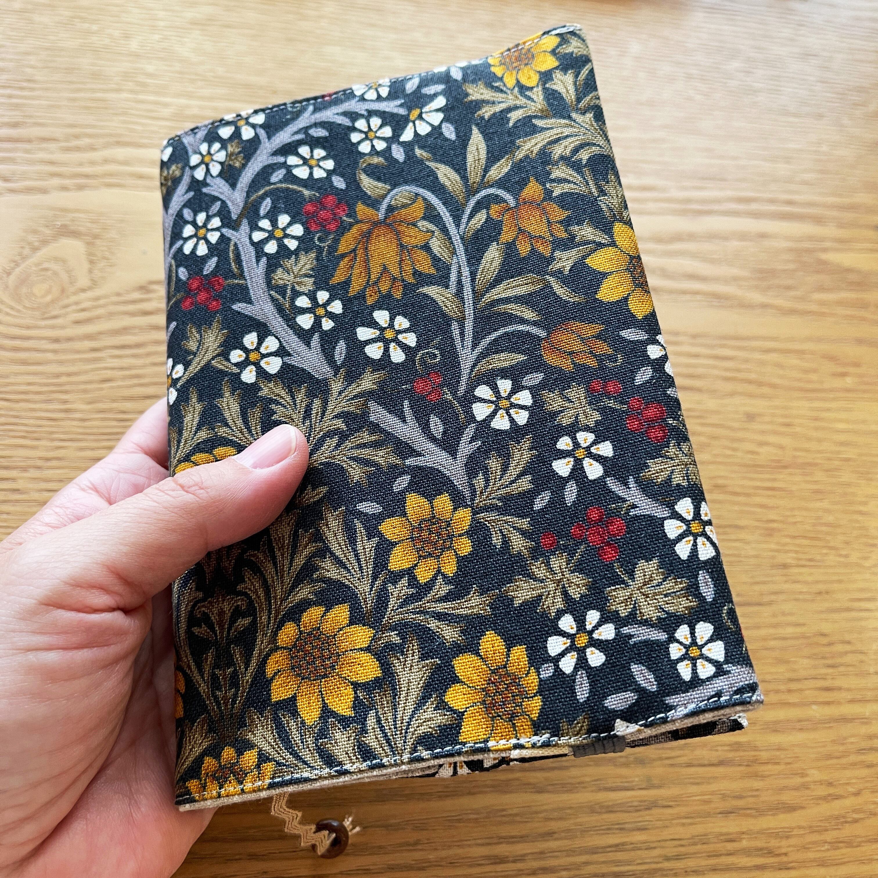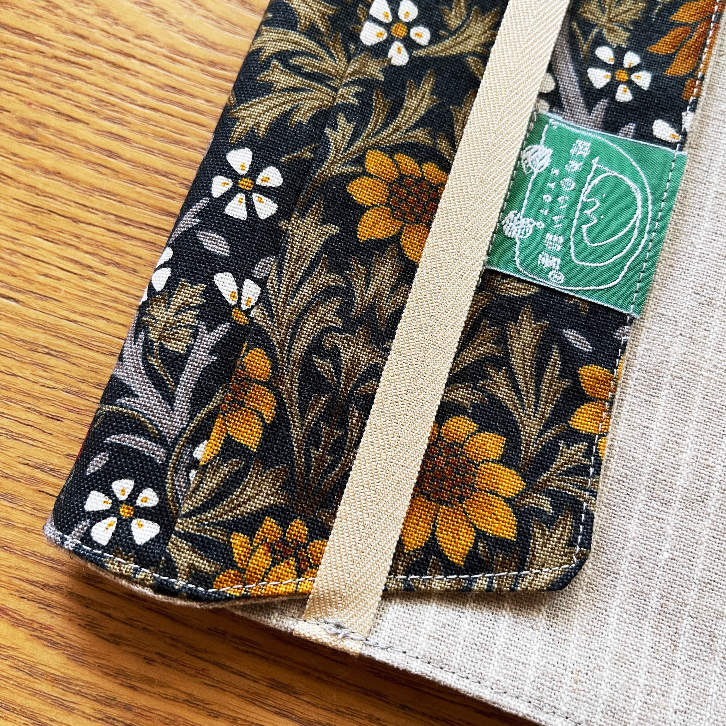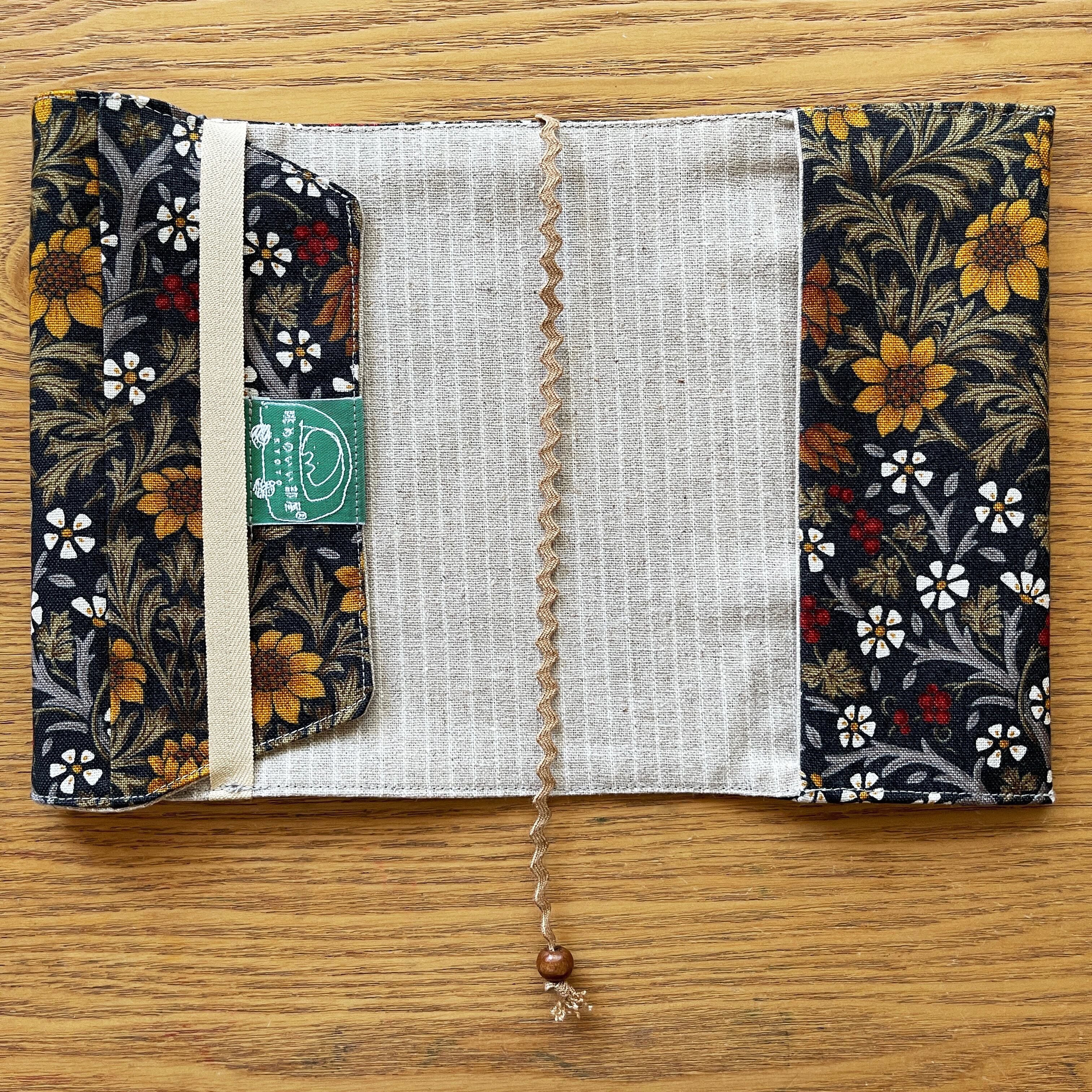 文庫判【ヴィンテージフラワー×生成ストライプ】ブックジャケット