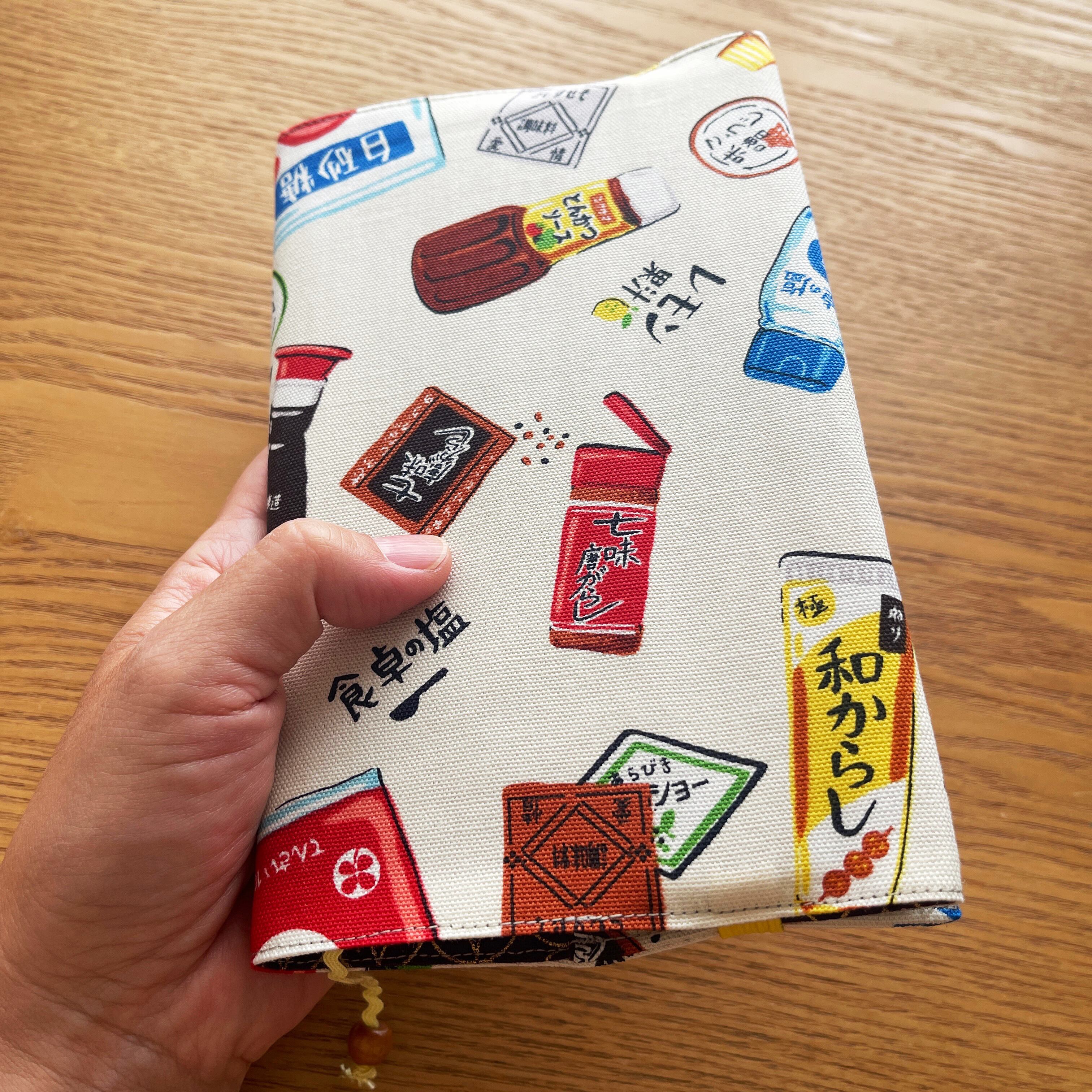 日本の食卓や台所に並ぶ調味料がほっこりするオックス生地です。