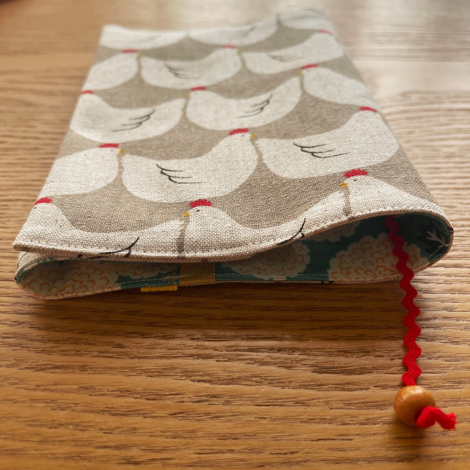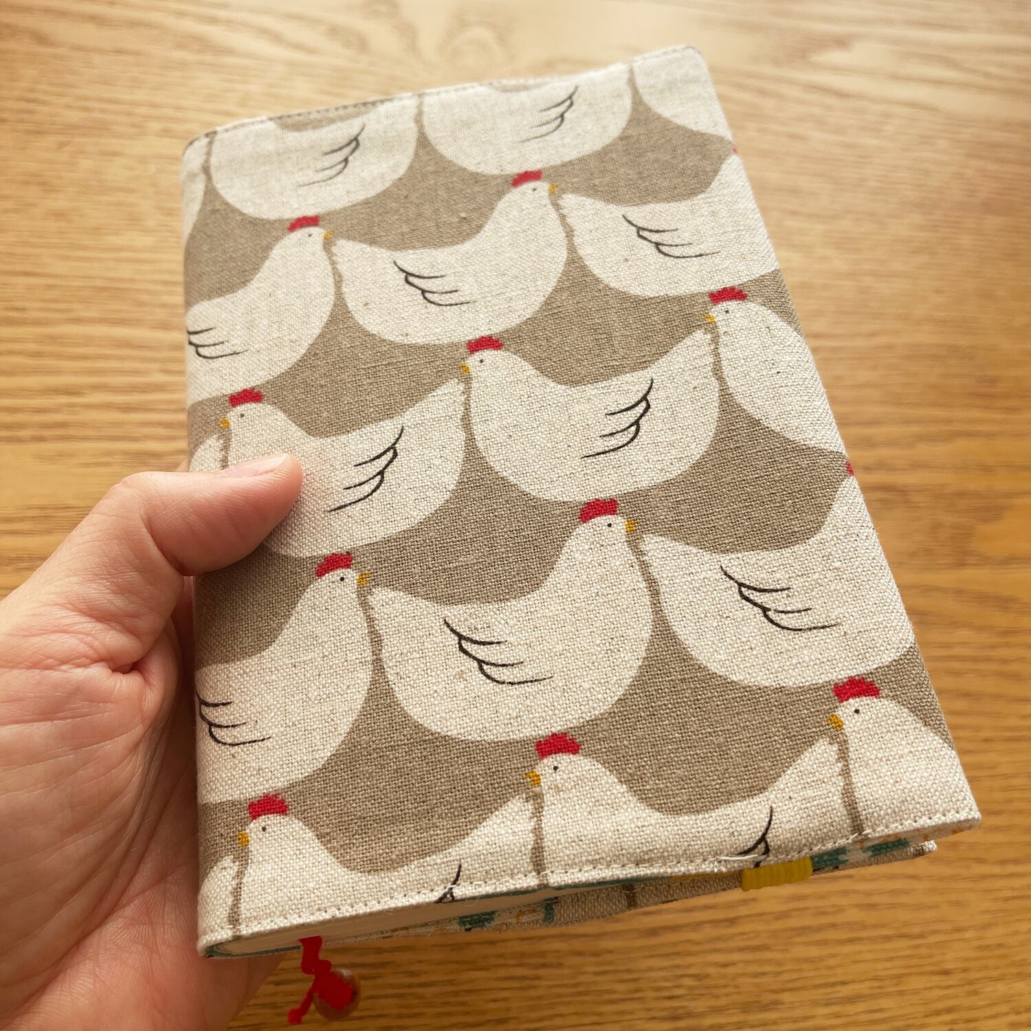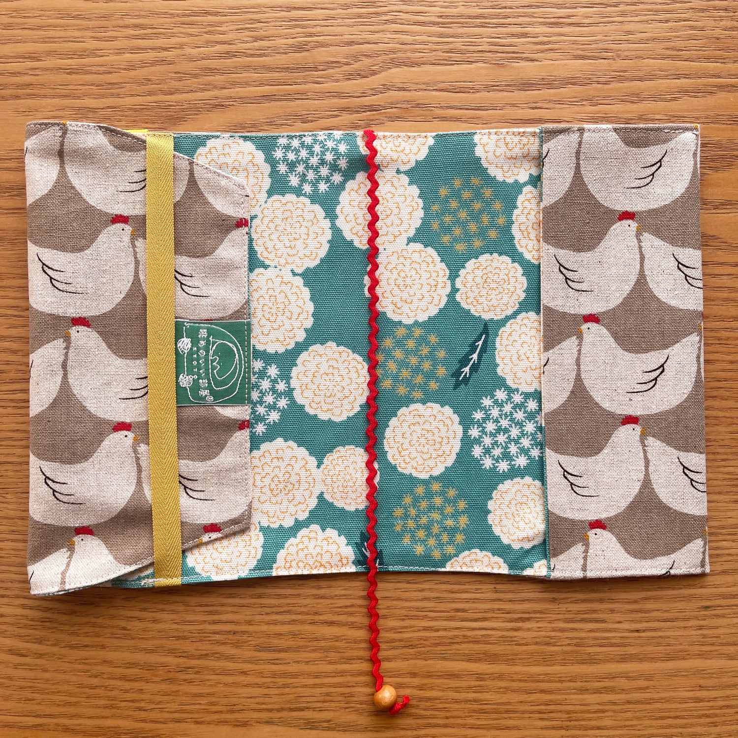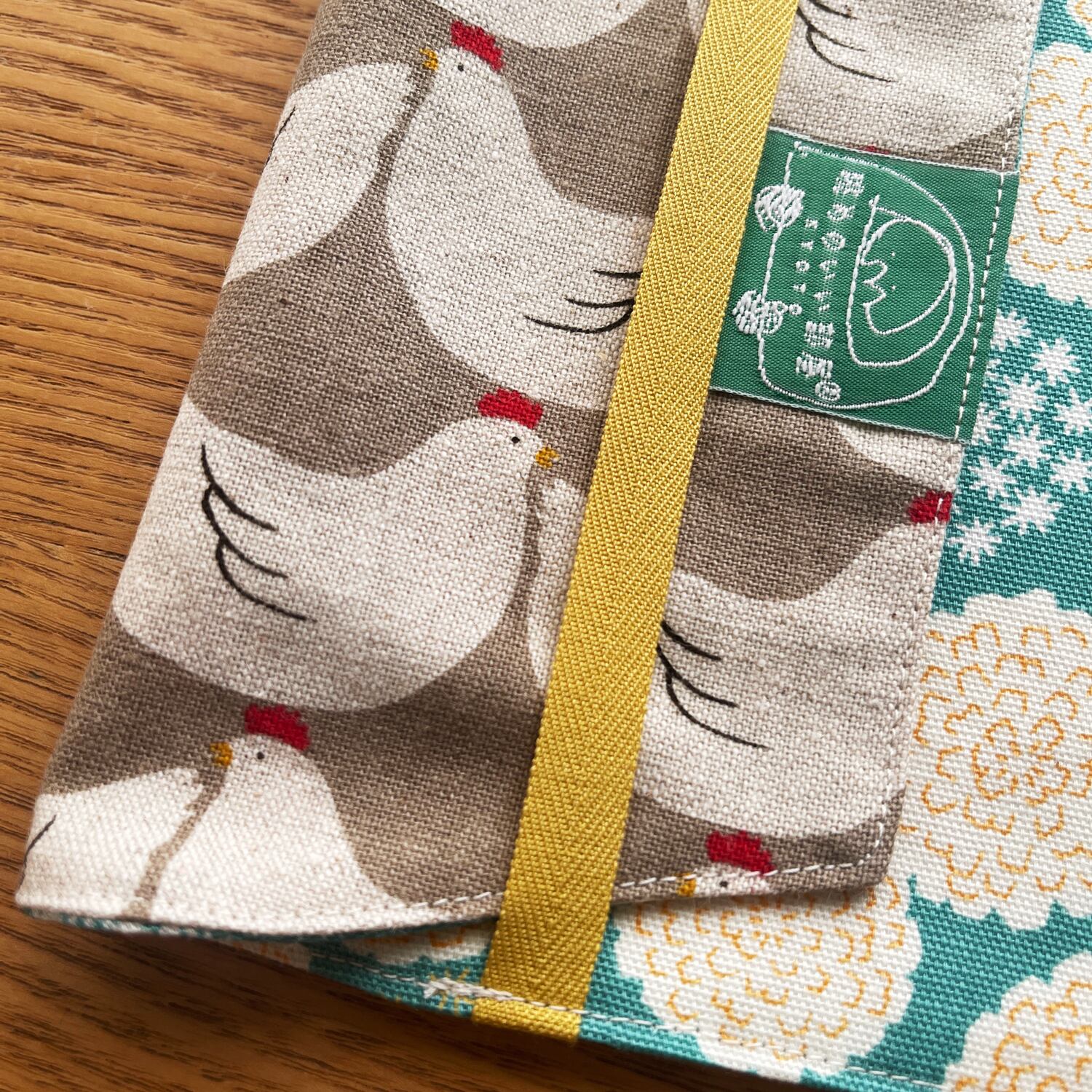 表地はにわとりのイラストがほっこりかわいいコットンリネンです。