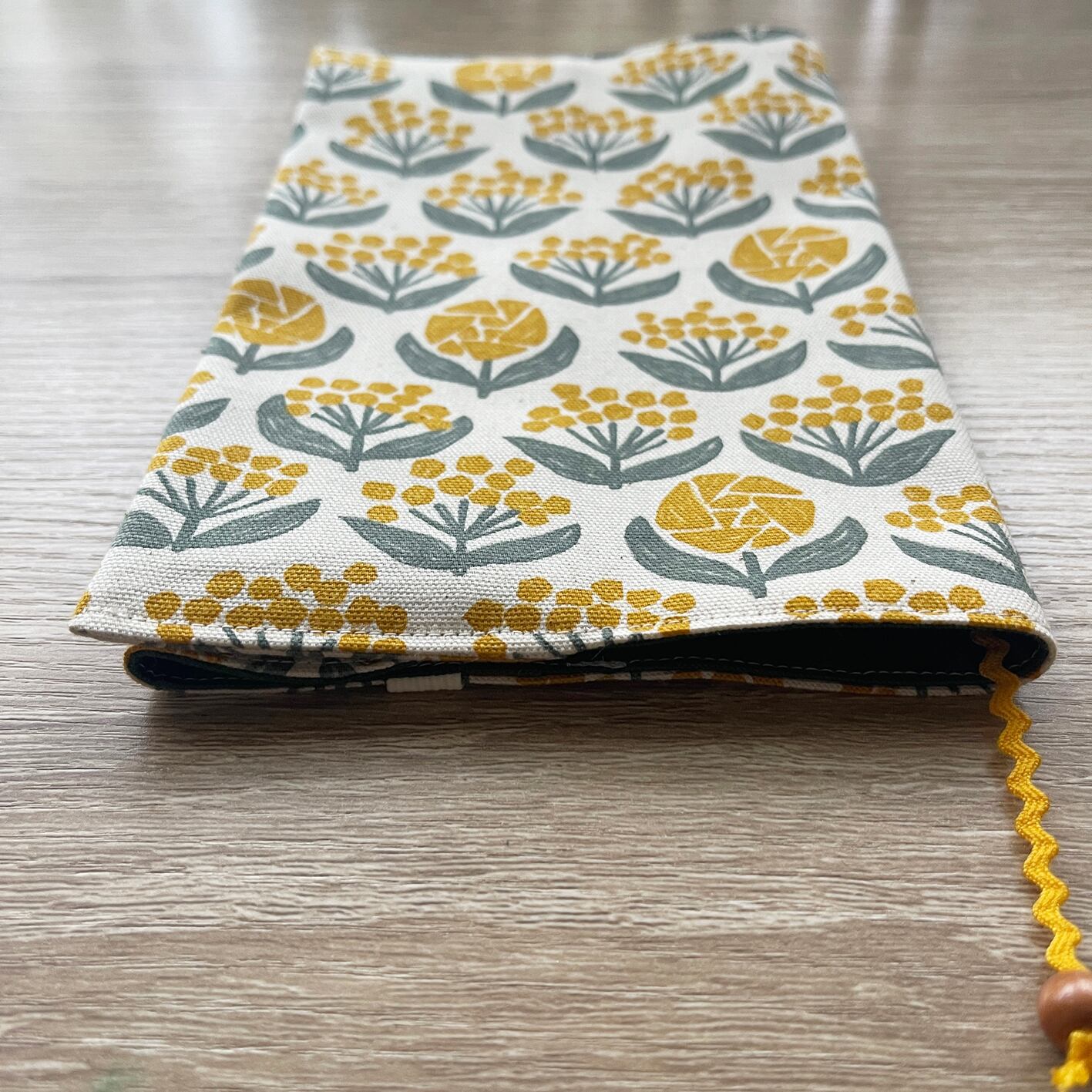 表地は生成り地に黄色いミモザとバラがかわいいオックス生地です。