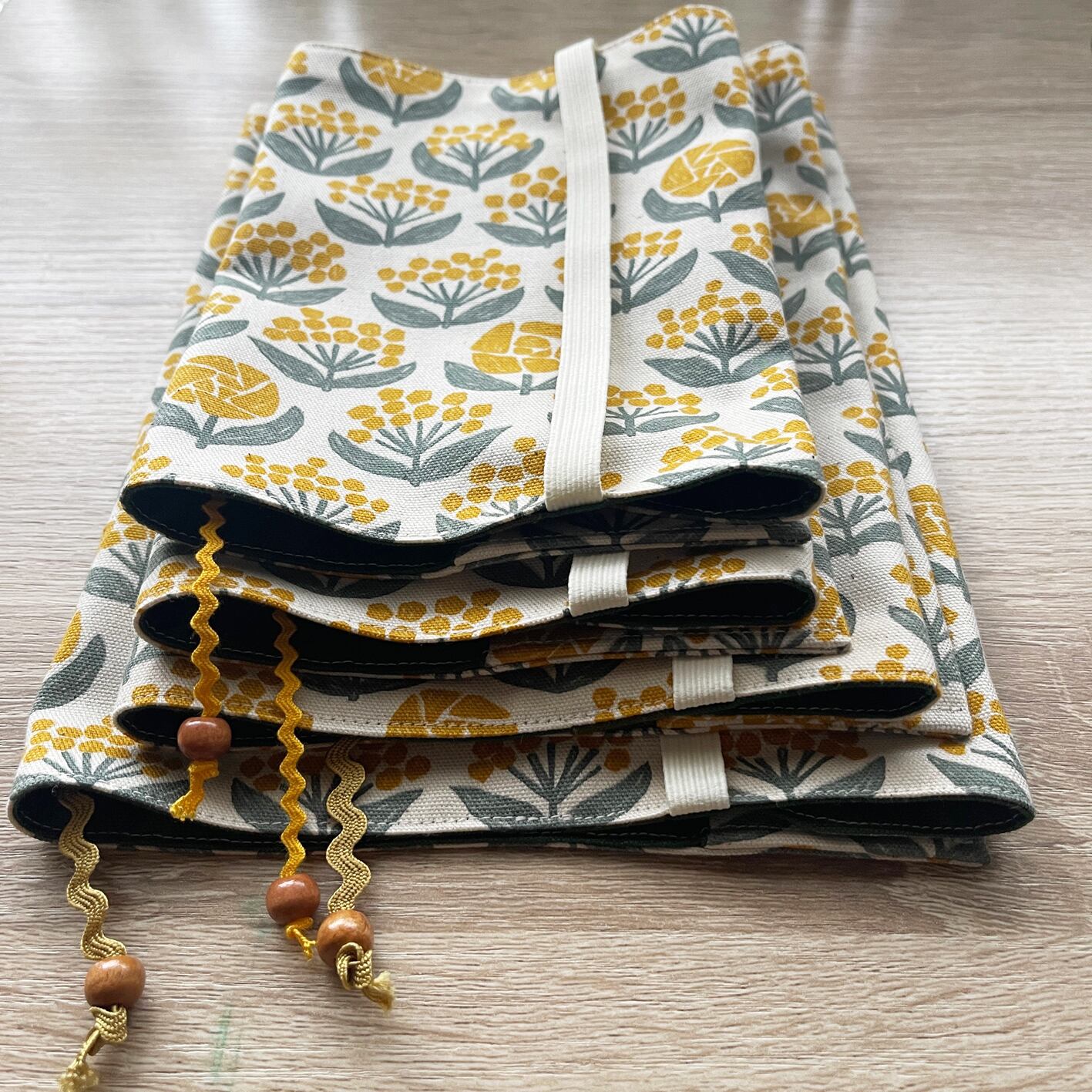 表地は生成り地に黄色いミモザとバラがかわいいオックス生地です。