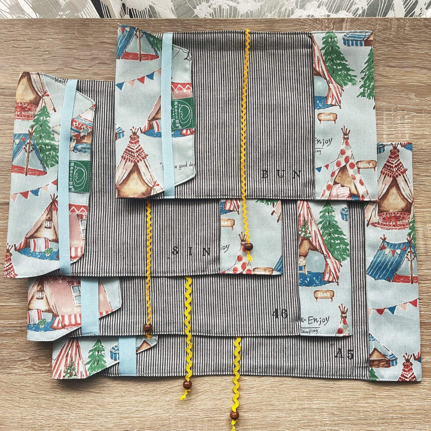 表地は古着のフェードのような淡い色彩で描かれたテントの柄が可愛いオックス生地です。