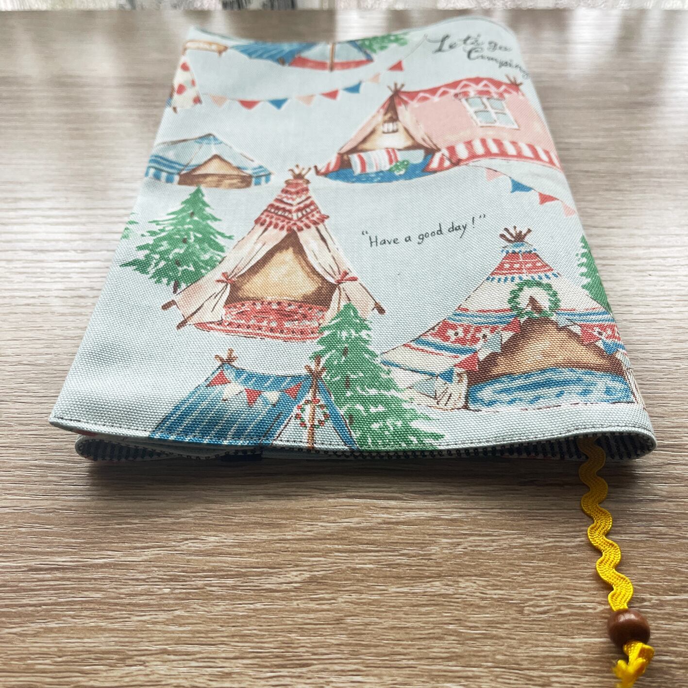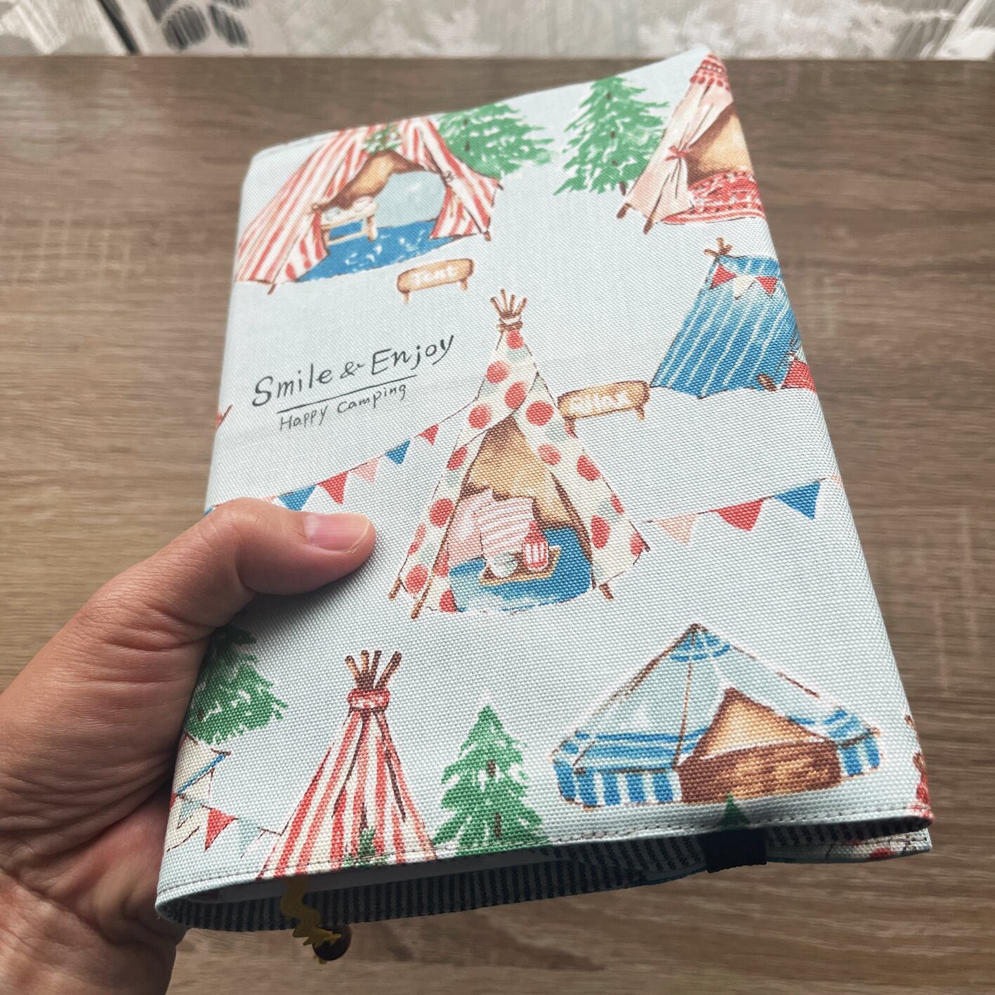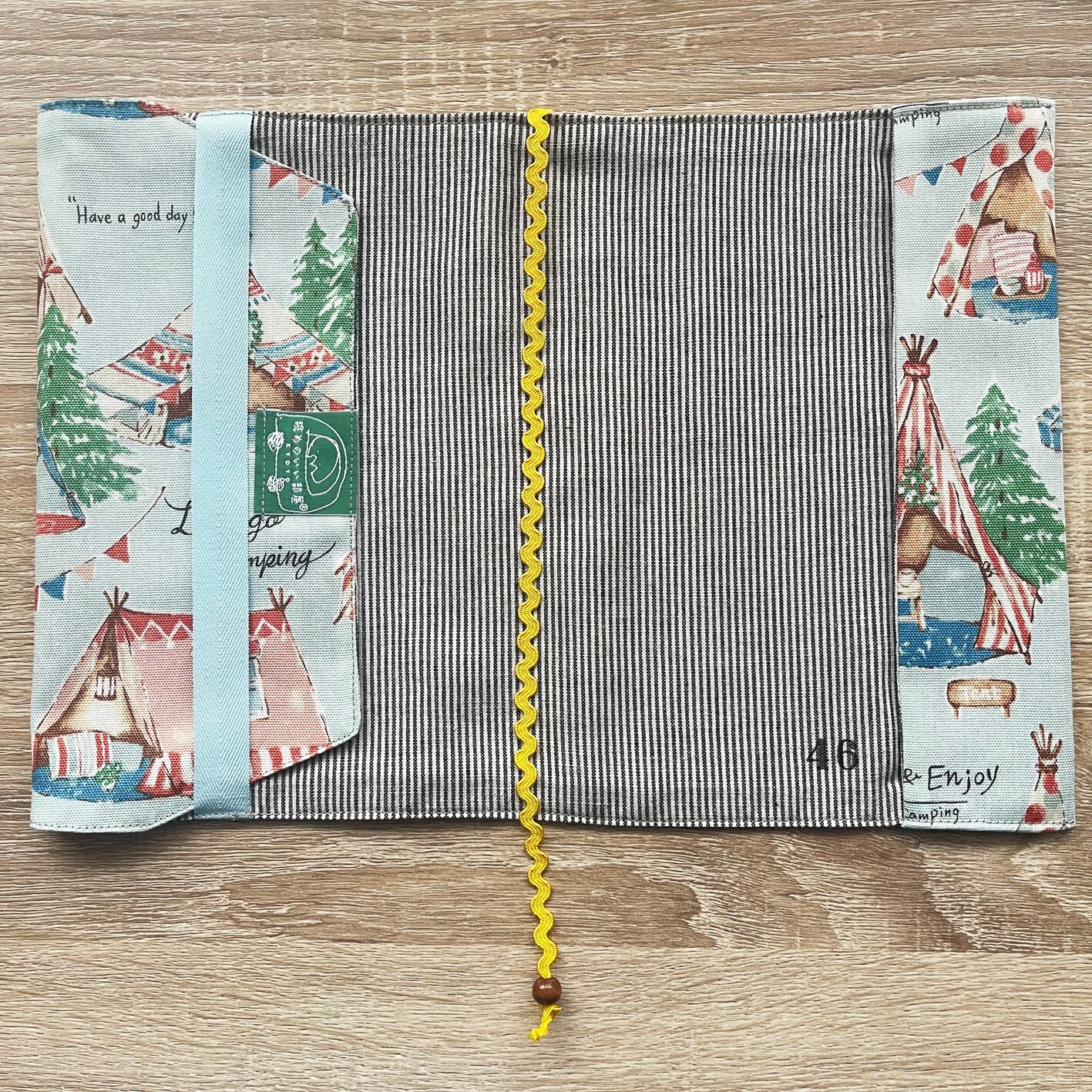 表地は古着のフェードのような淡い色彩で描かれたテントの柄が可愛いオックス生地です。