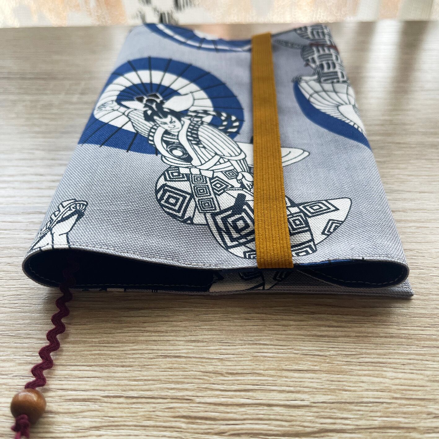 表地はブルーグレーに歌舞伎のイラストが素敵なオックスフォード生地です。