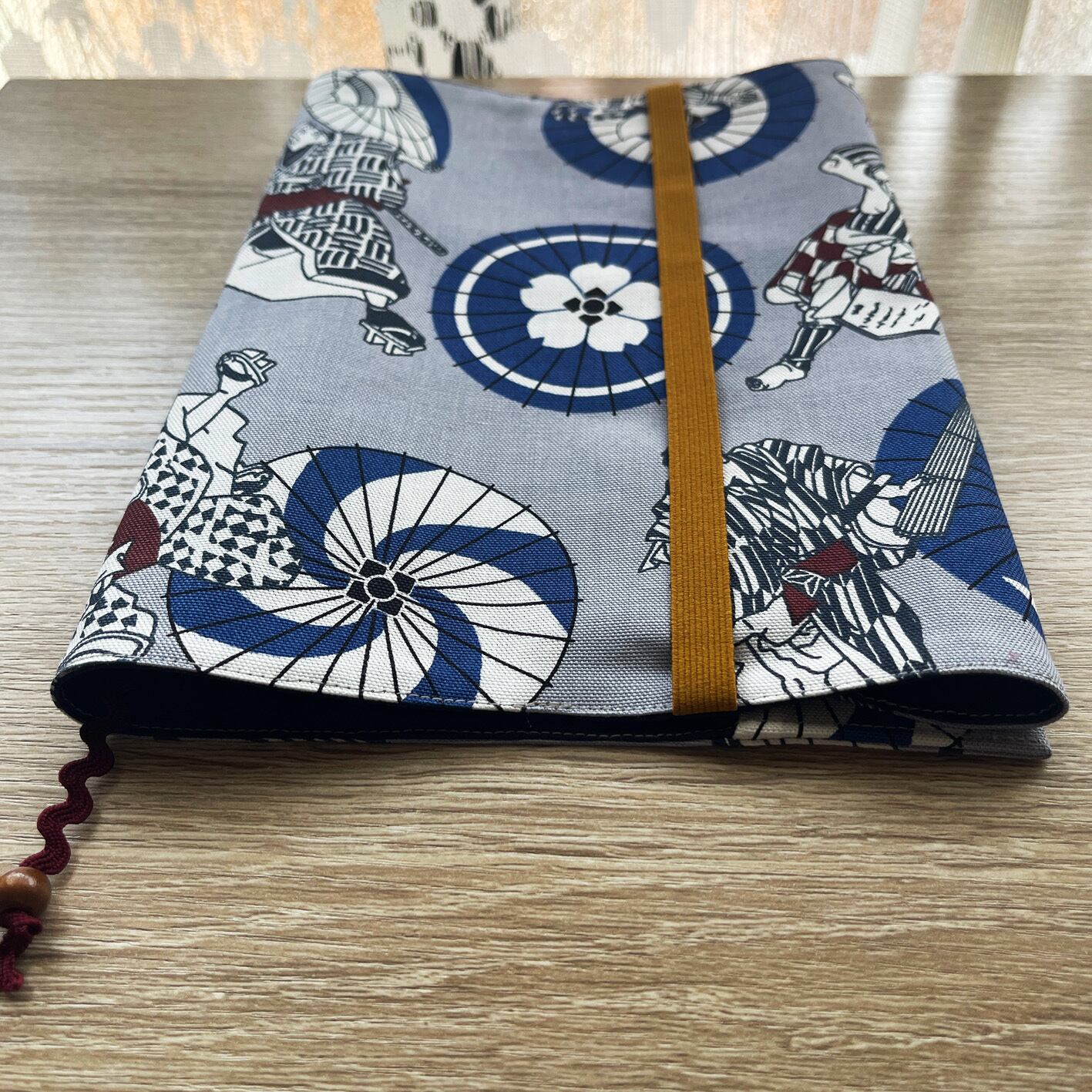 表地はブルーグレーに歌舞伎のイラストが素敵なオックスフォード生地です。