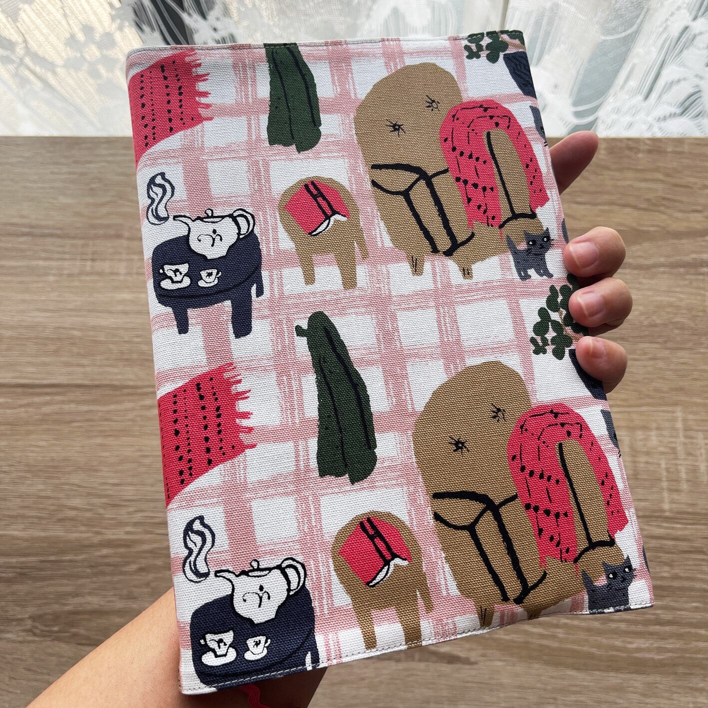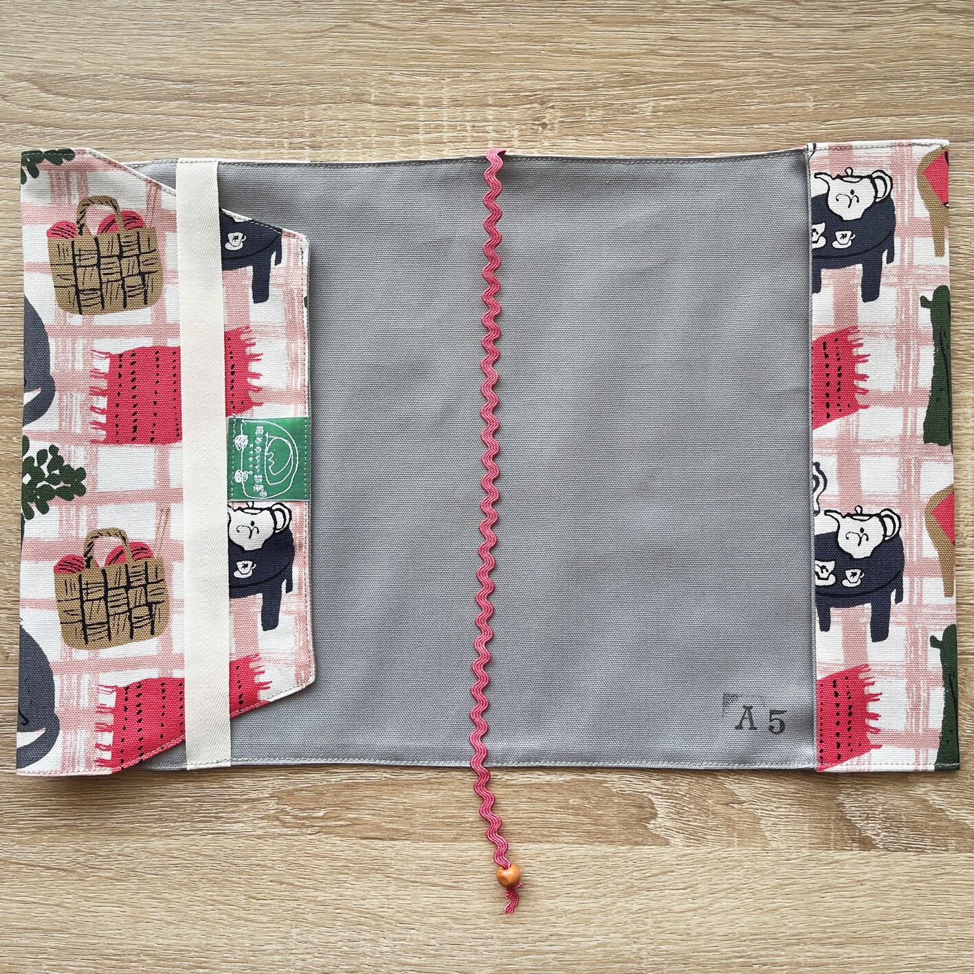 表地は猫がいる部屋のイラストがかわいいオックスフォード生地です。