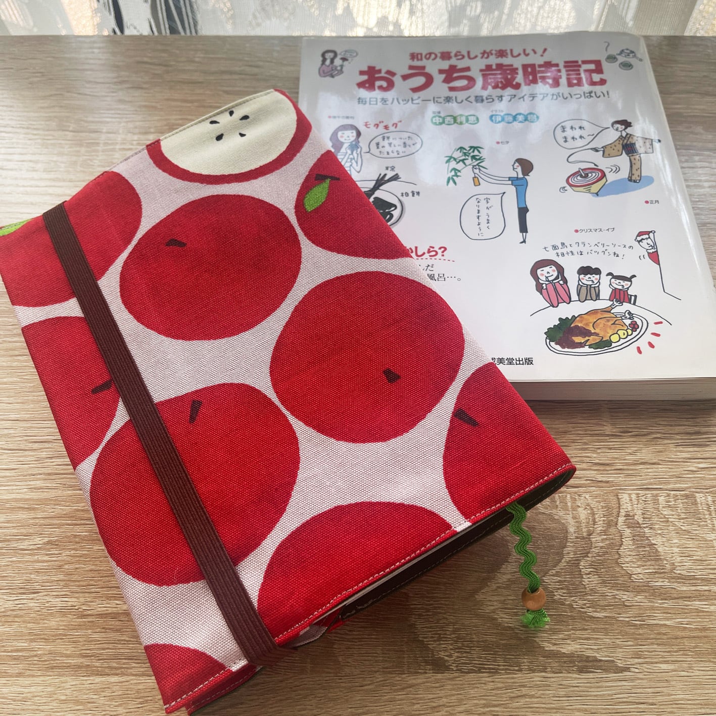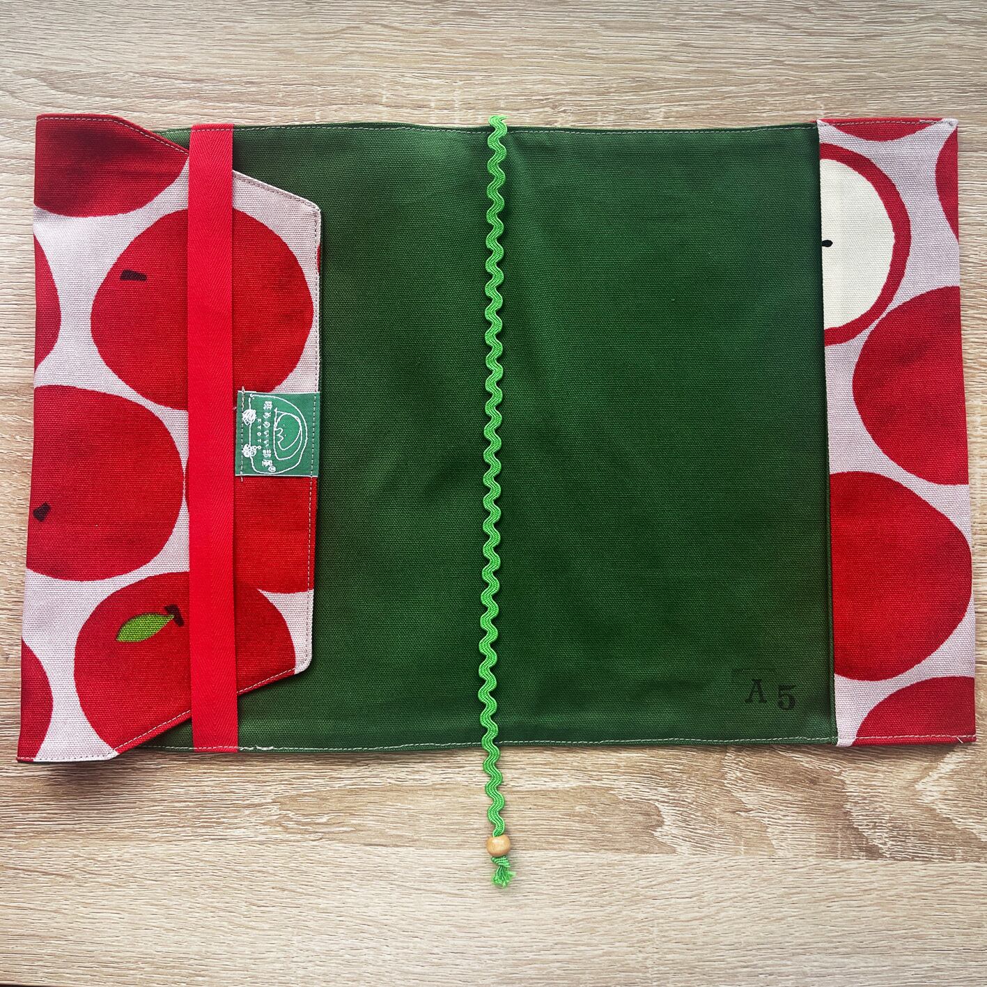表はグレー地にゴロゴロ転がる大きなりんごが可愛いオックス生地