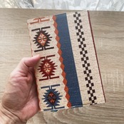 オレンジ×ブルー×ブラウンのネイティブ柄のオックス生地です。