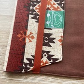 オレンジ×ブルー×ブラウンのネイティブ柄のオックス生地です。