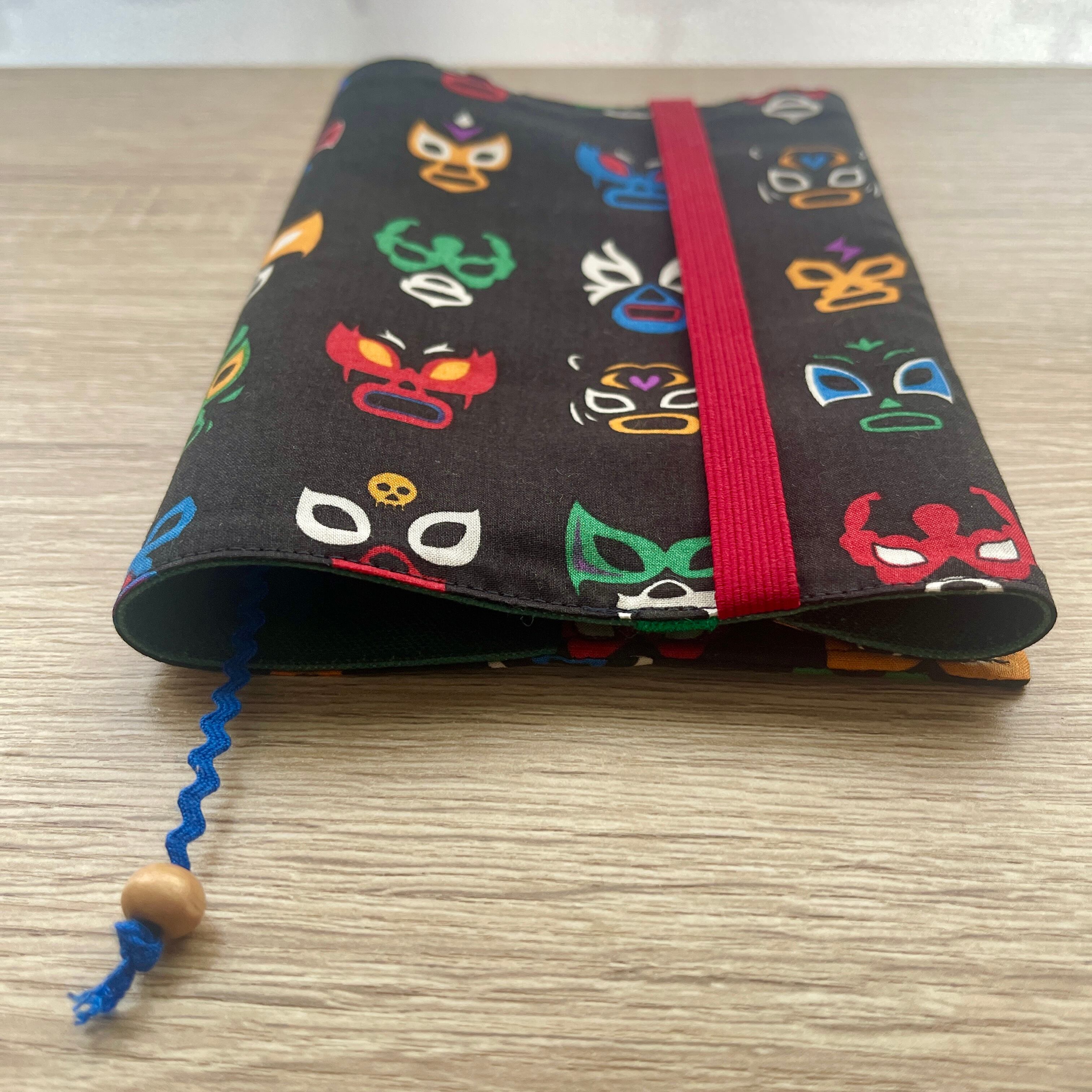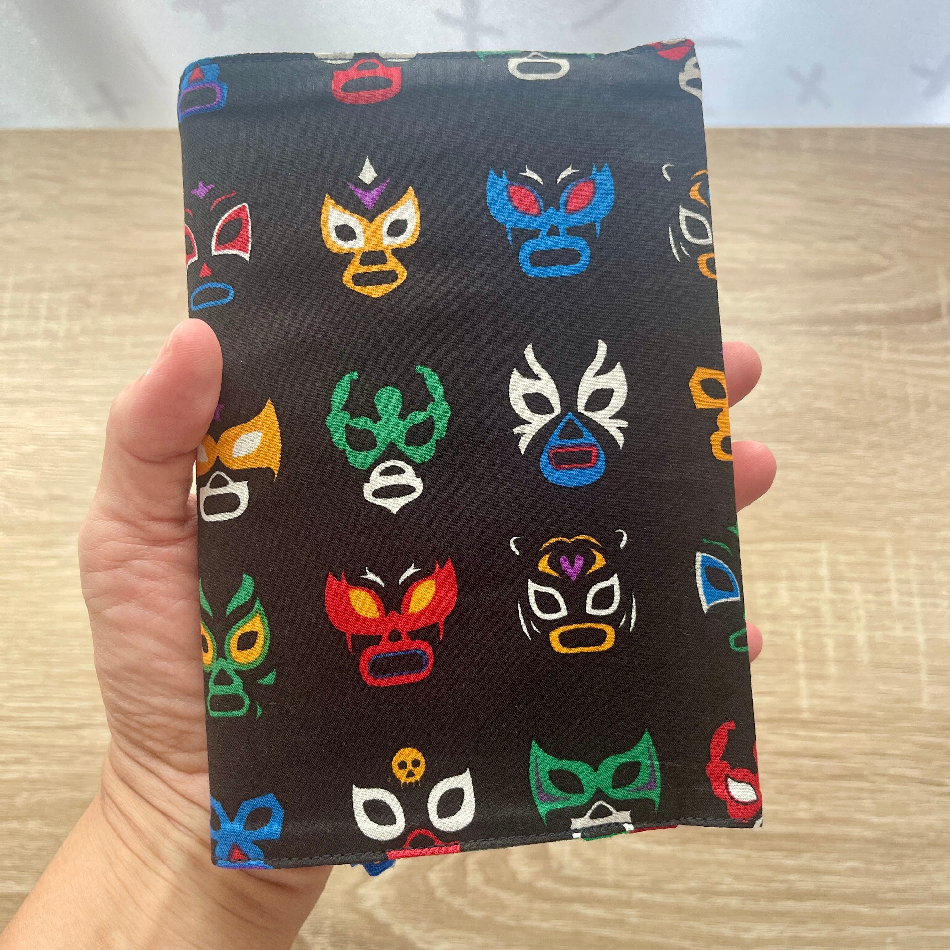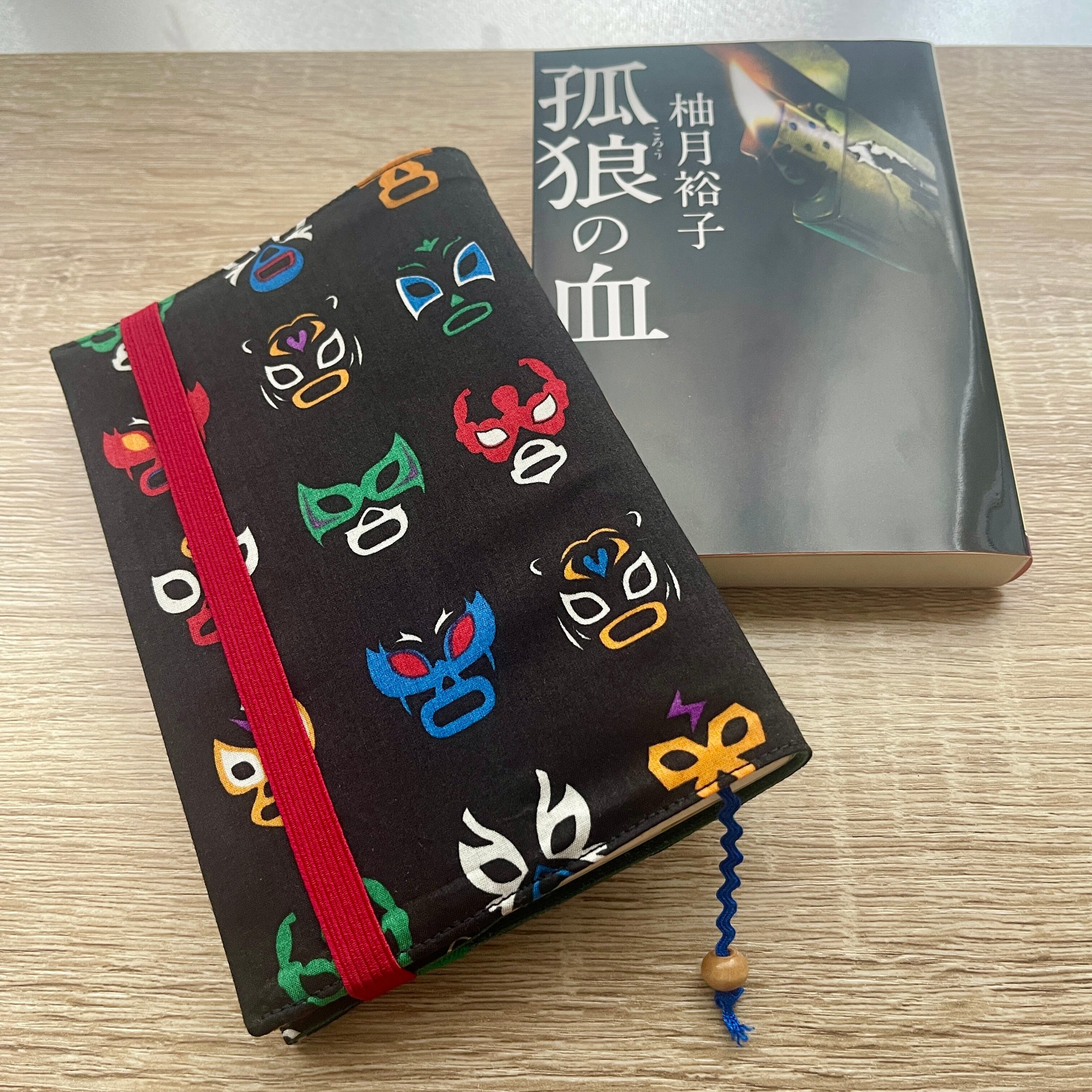 表地は黒地にカラフルなマスクマンが可愛いコットン生地です。