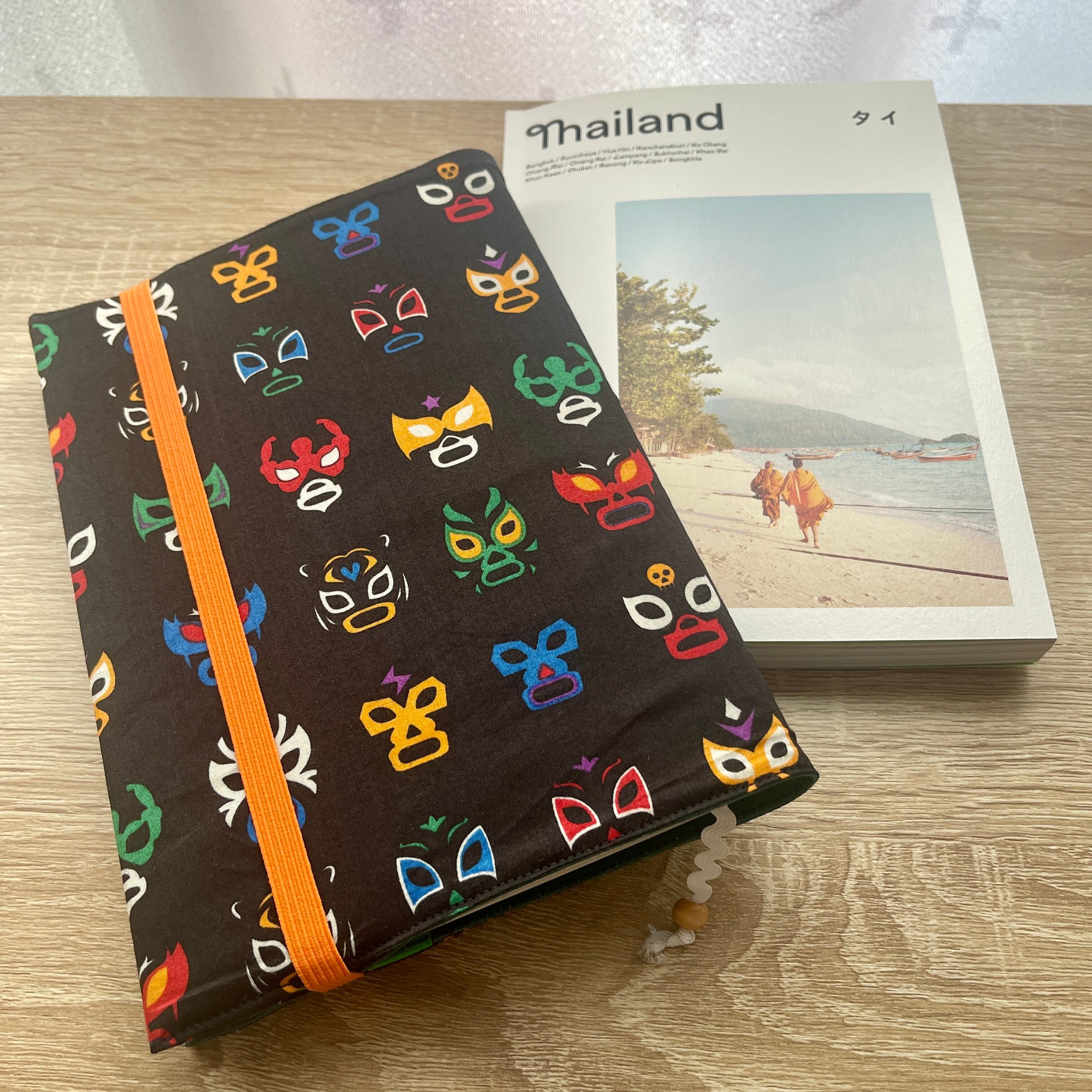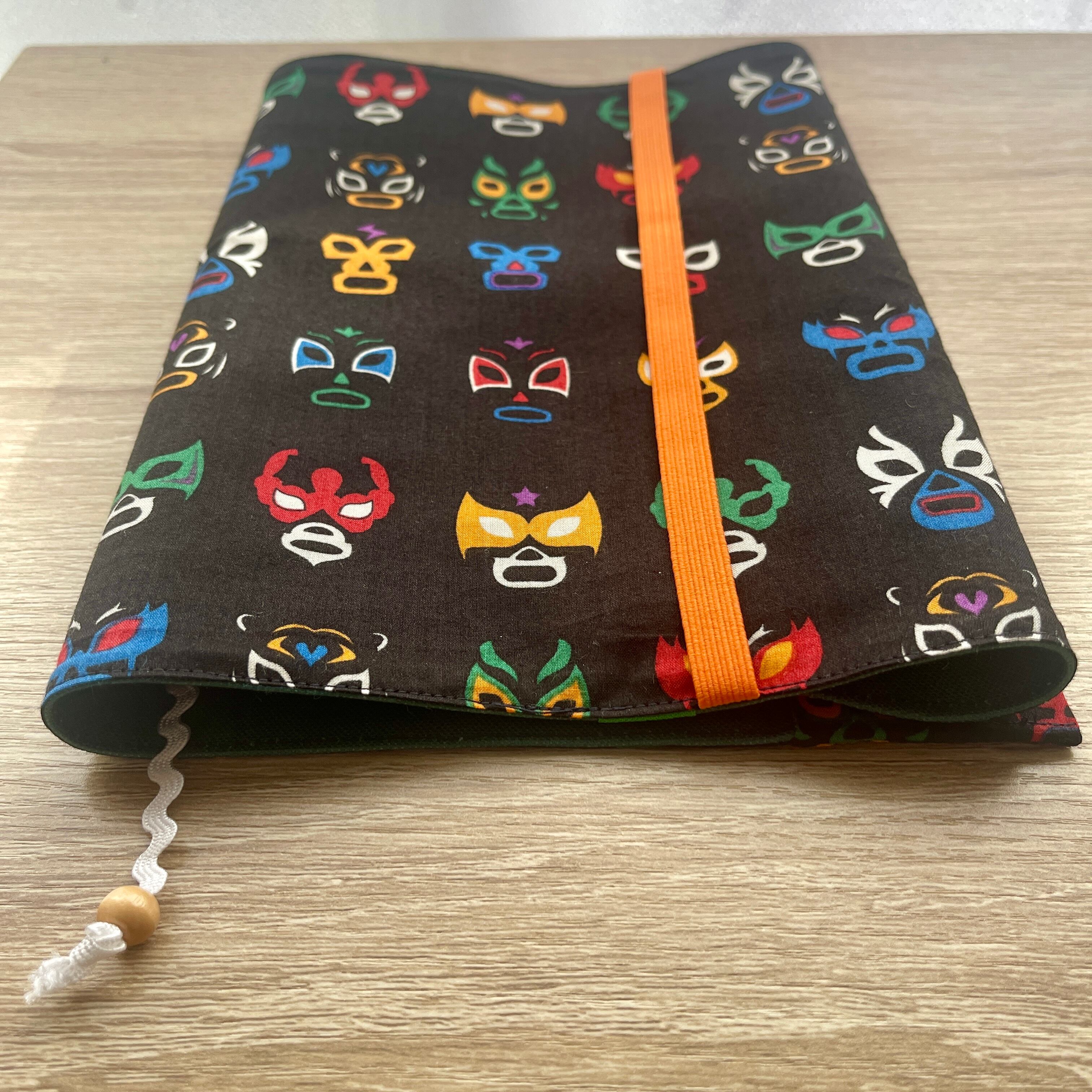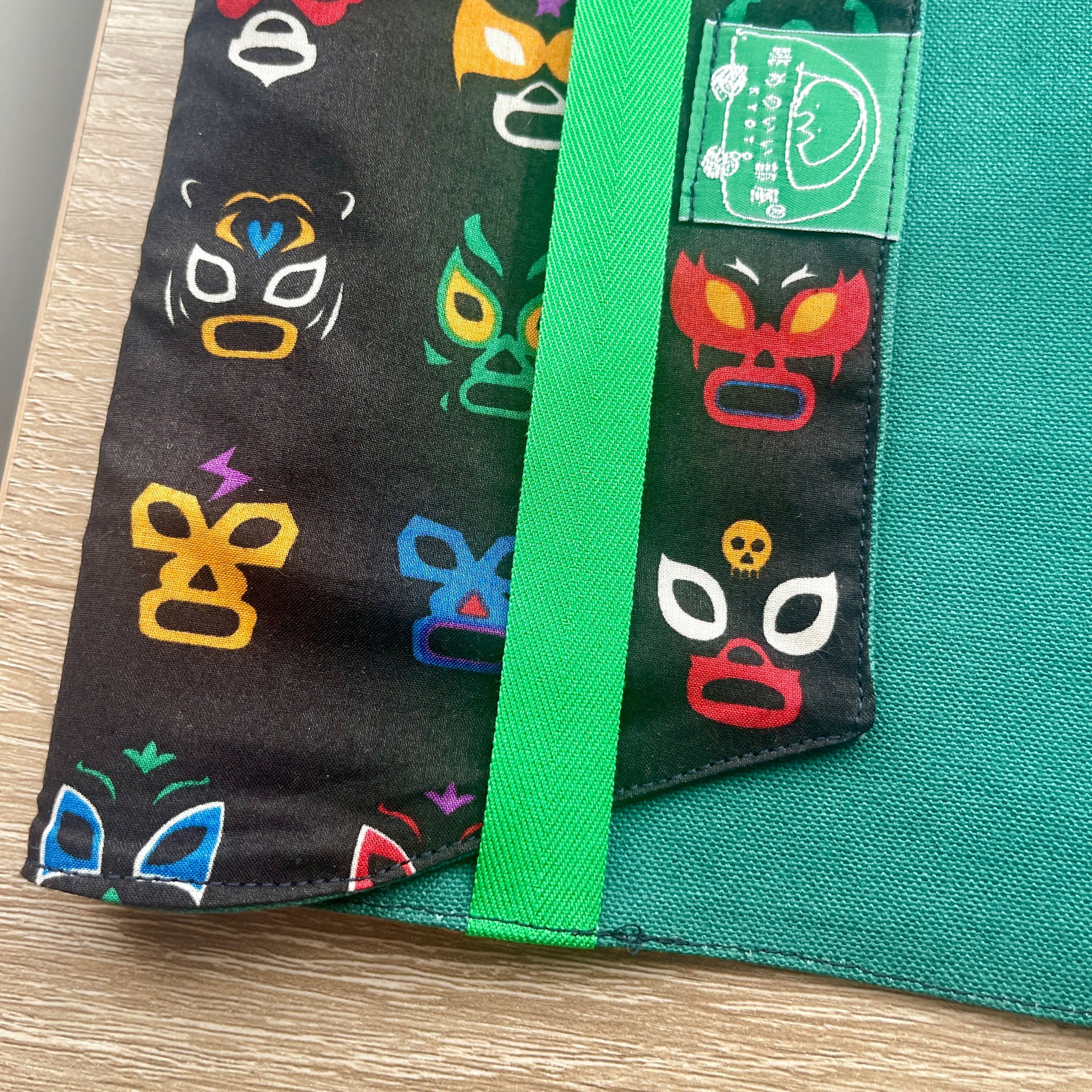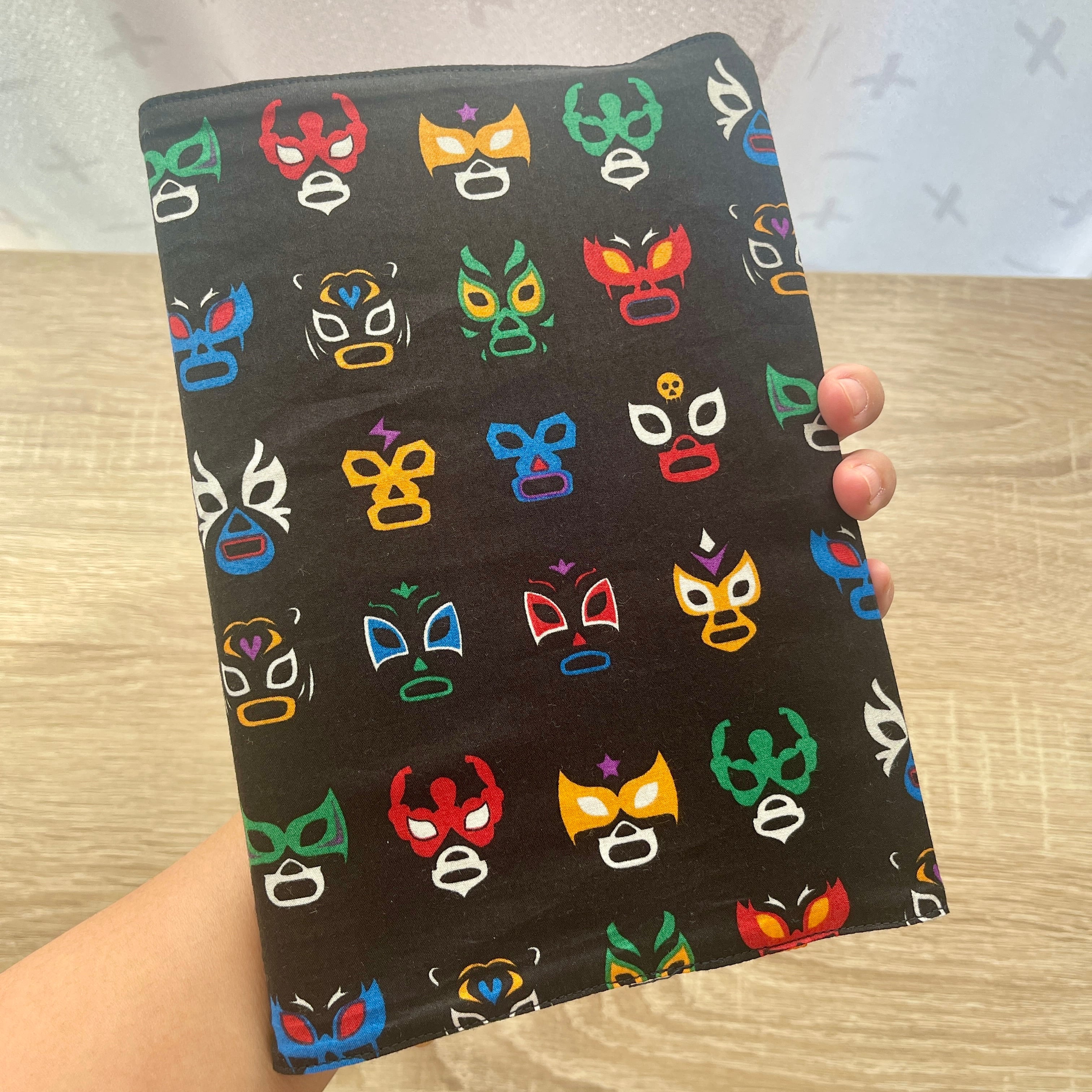 表地は黒地にカラフルなマスクマンが可愛いコットン生地です。