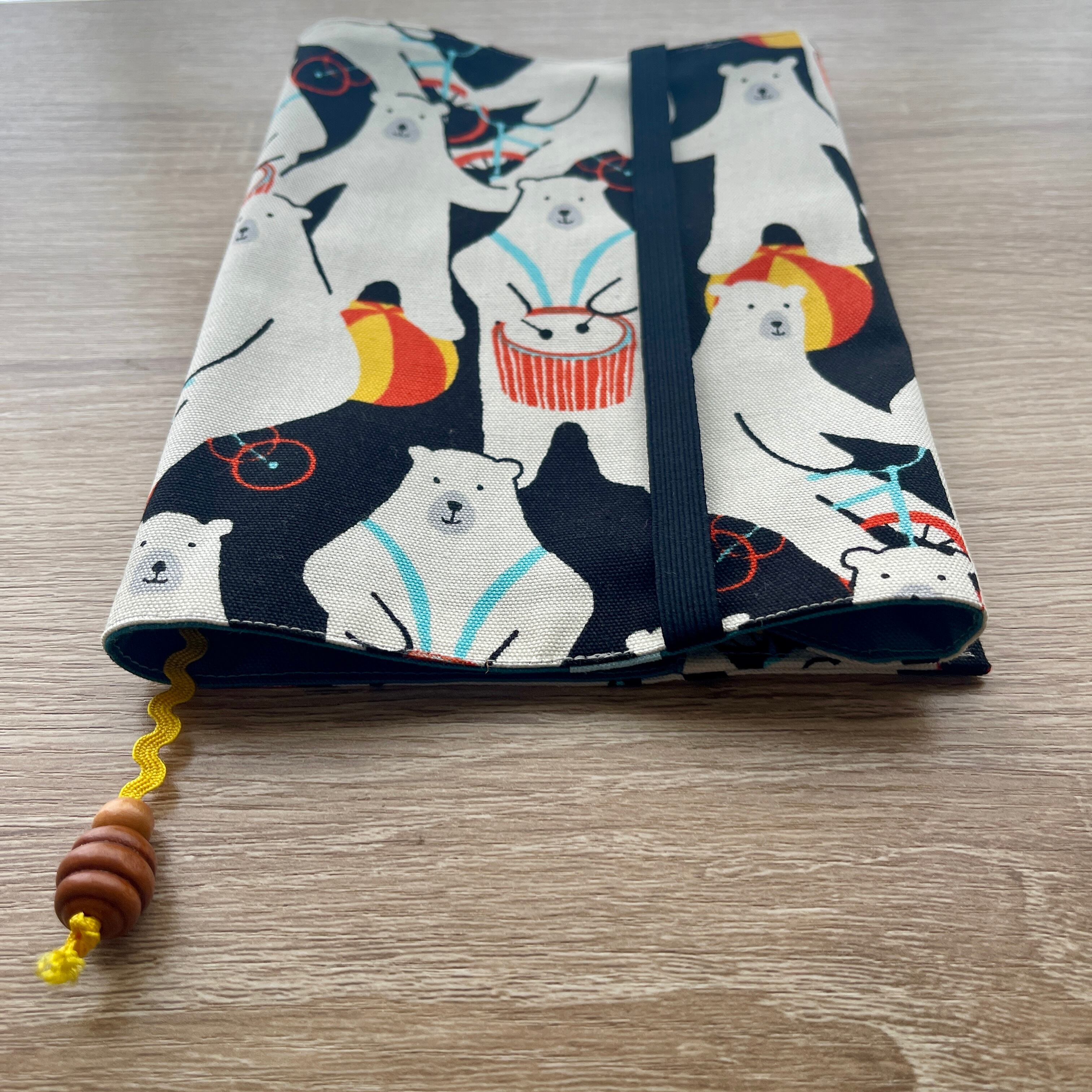 黒地に白くまサーカスのイラストが可愛いオックスフォード生地に