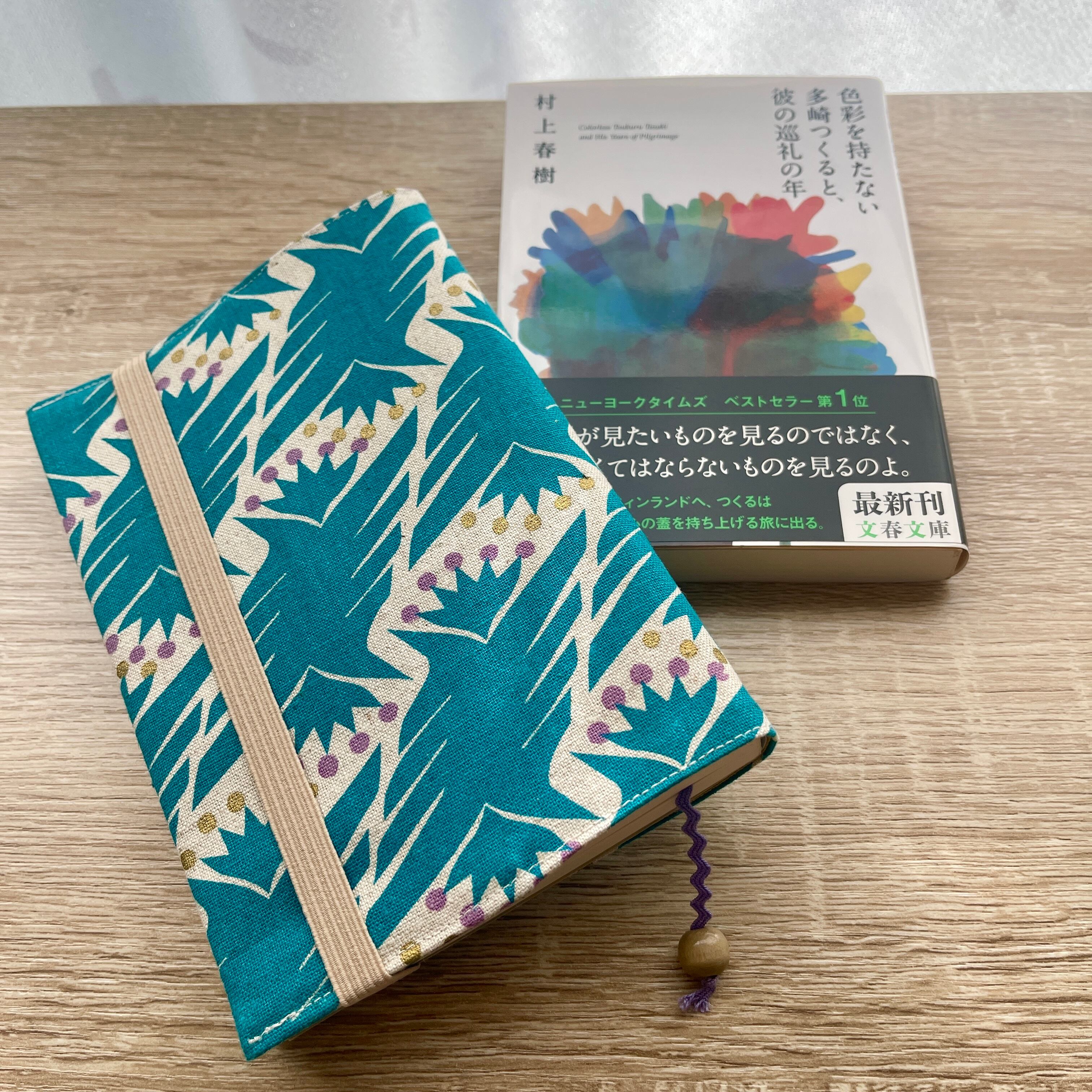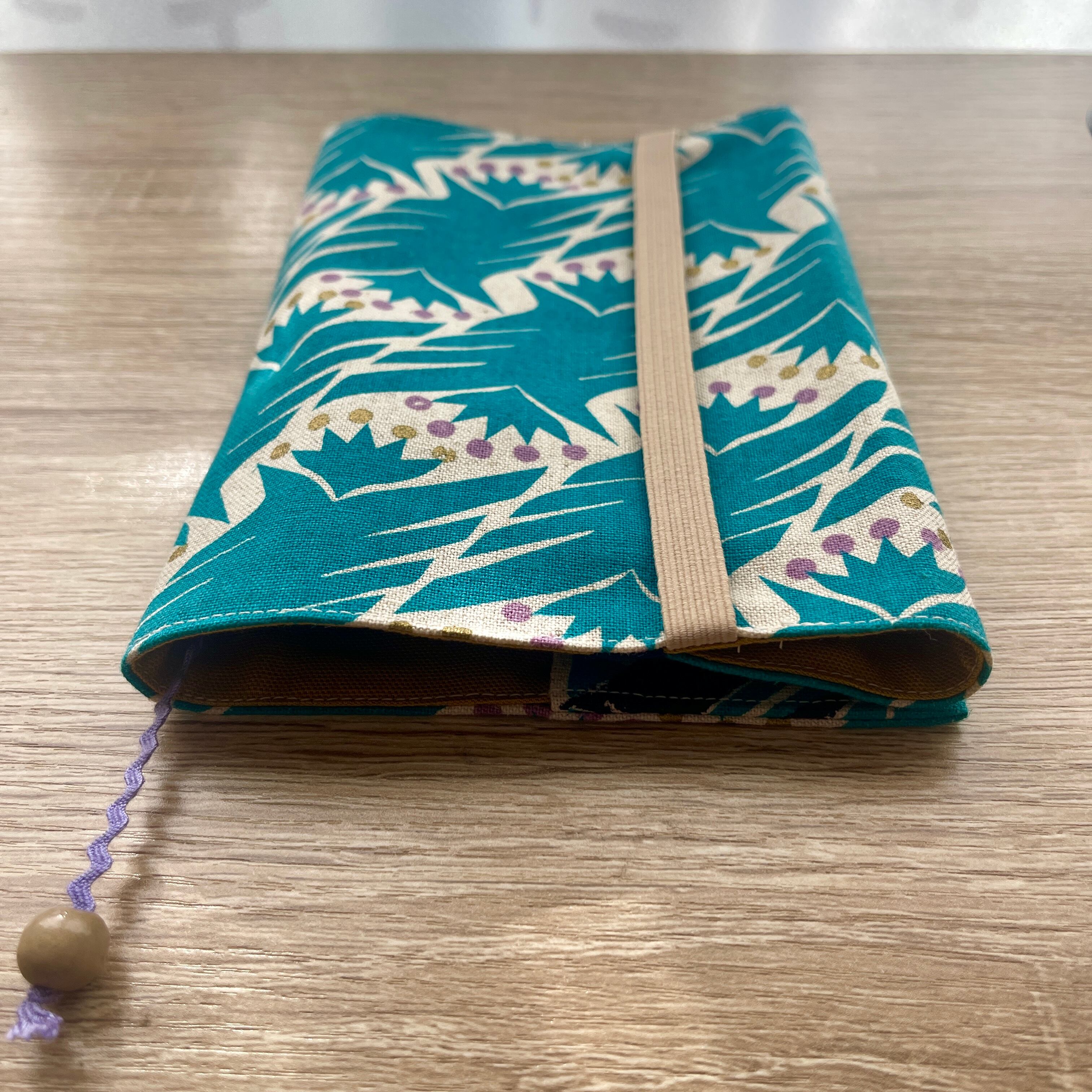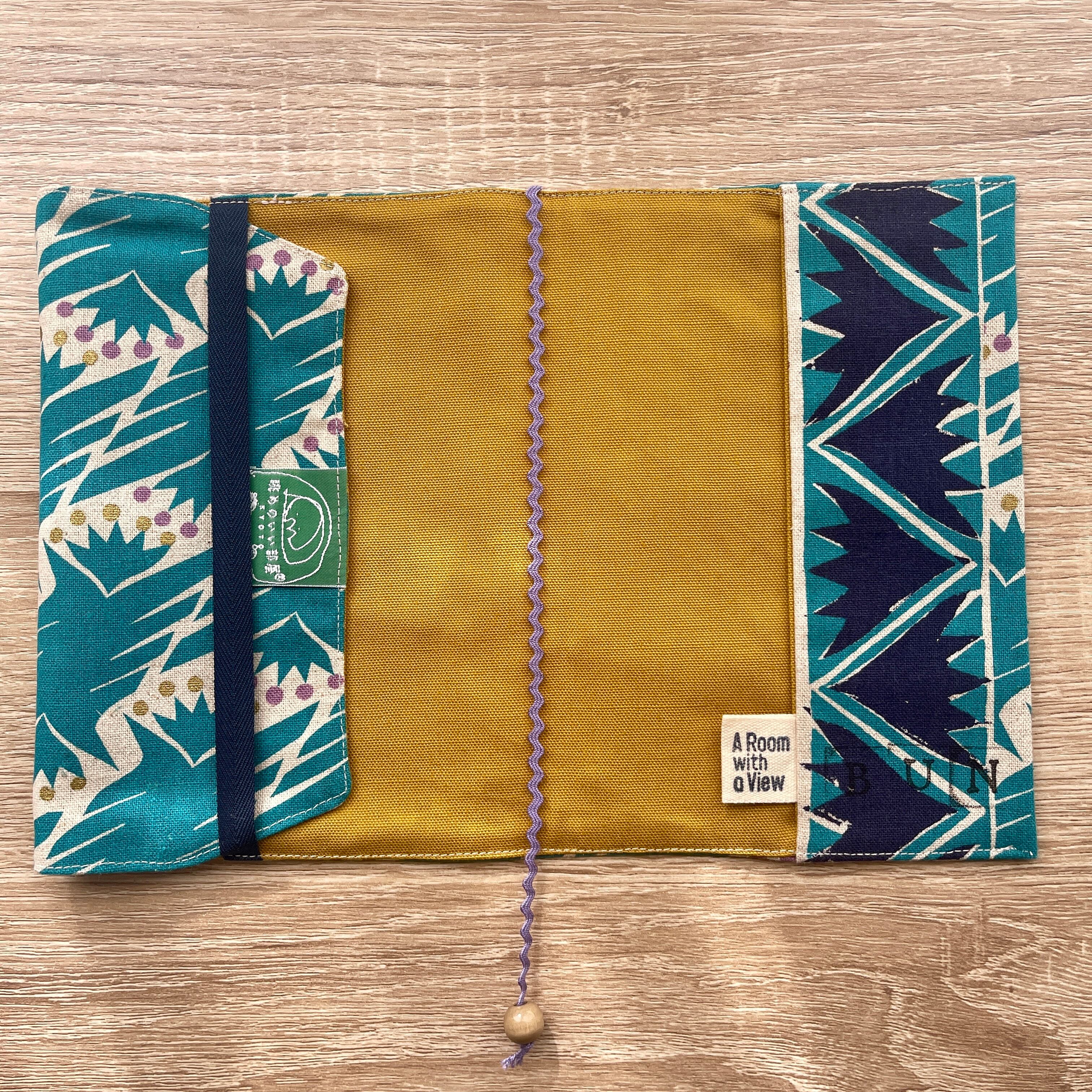 表地はコットンリネンでピーコックブルーの模様がカッコイイです。