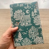 ピーコックグリーン色の森の様子が可愛いコットン生地に