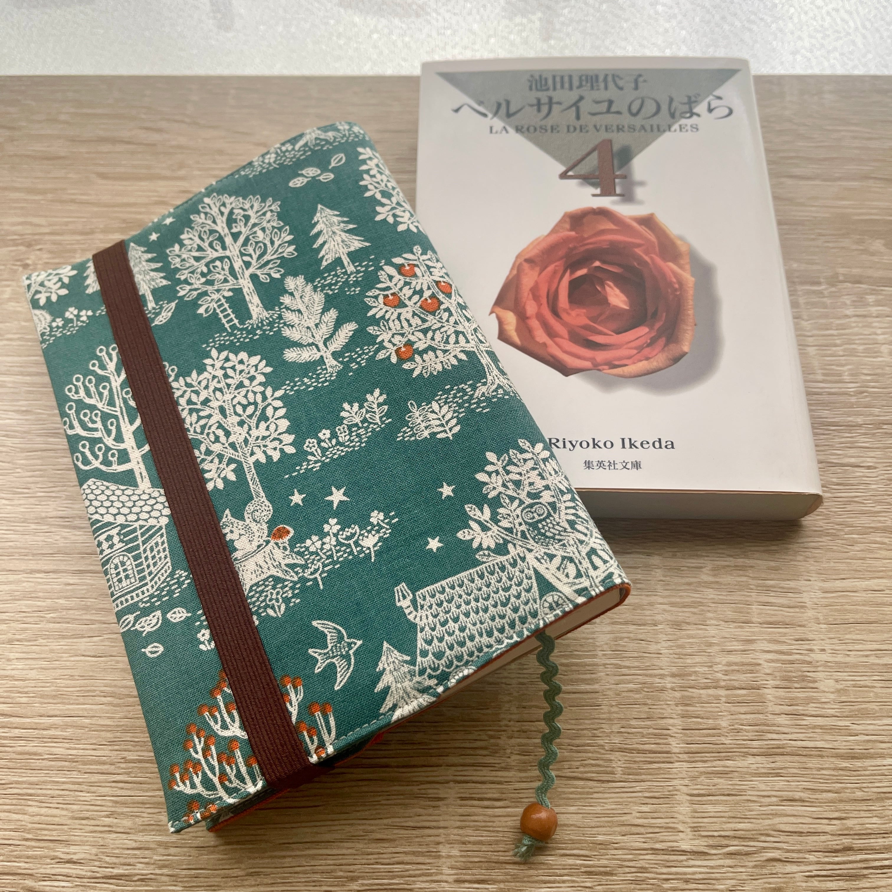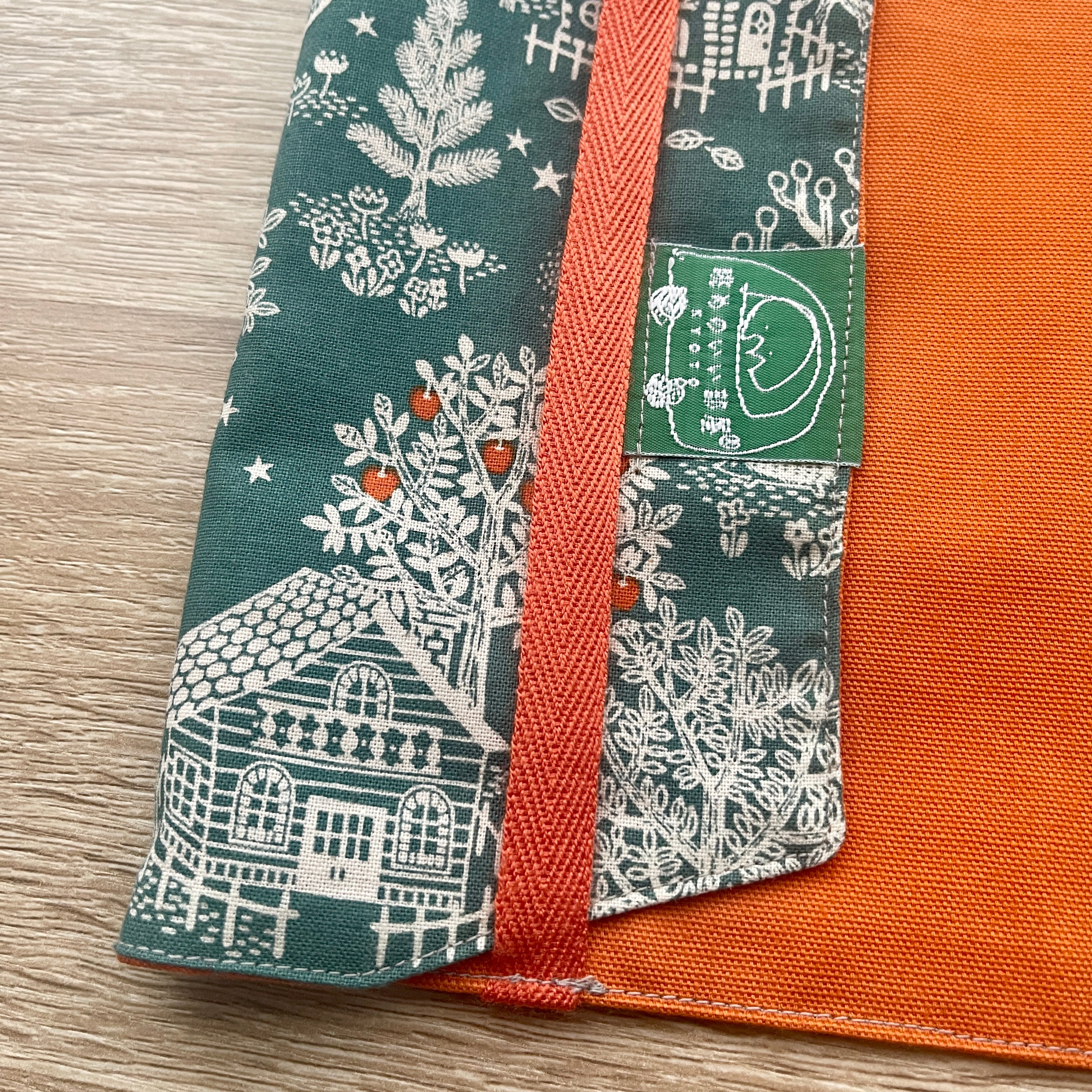 オレンジの裏地、アンティークグリーンの栞を合わせました。