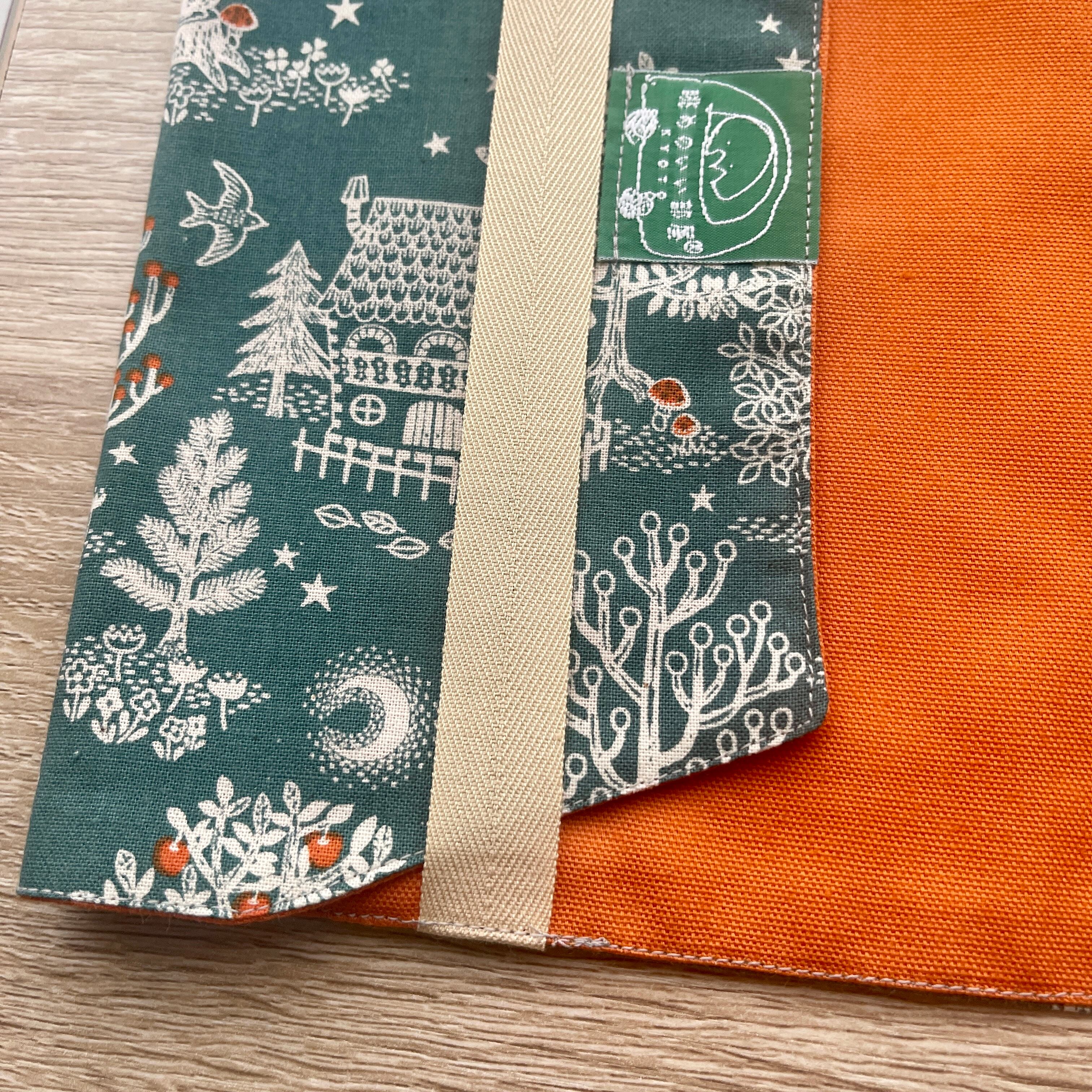 オレンジの裏地、アンティークグリーンの栞を合わせました。